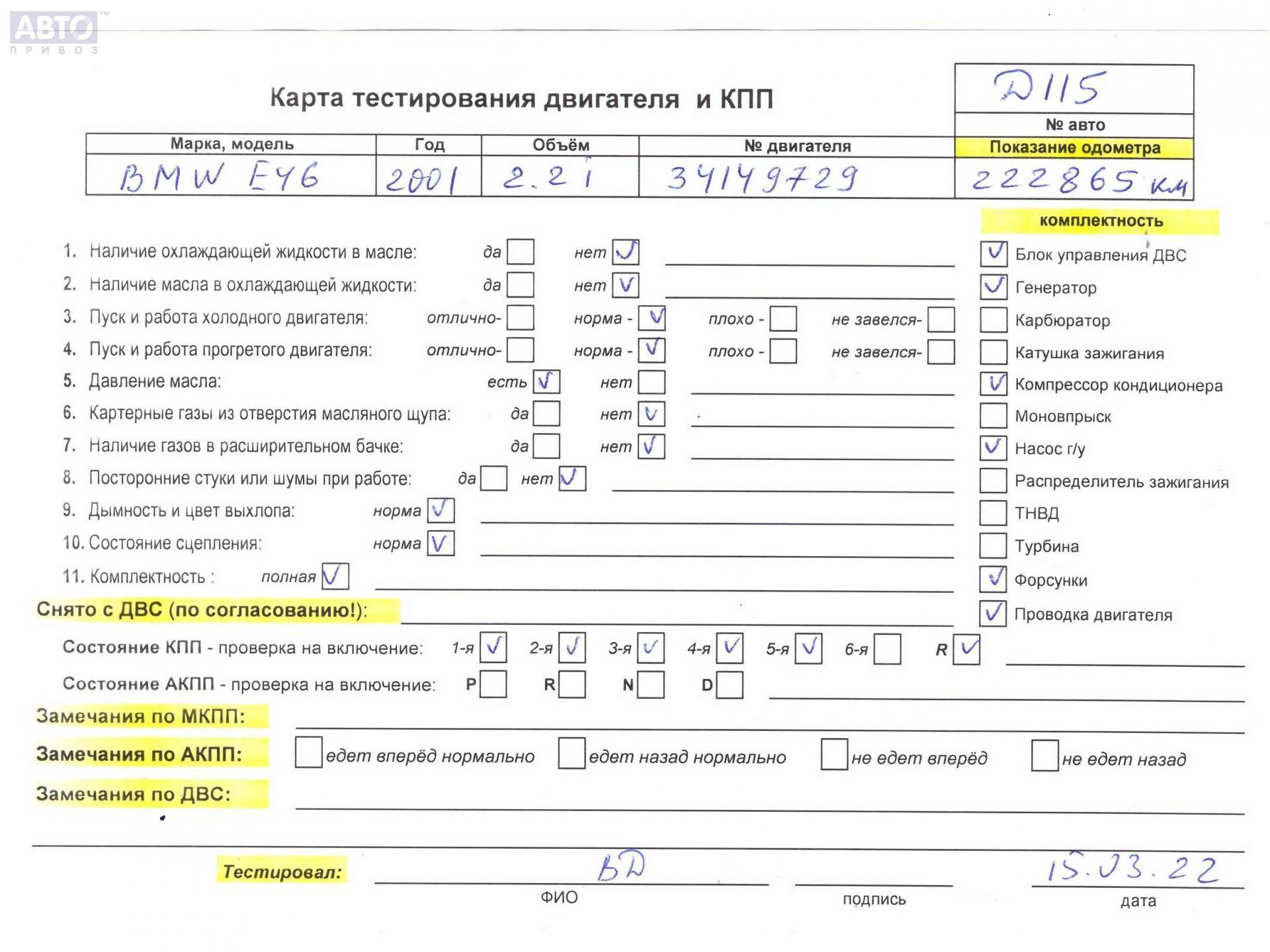 | Двигатель / КПП: | 2.2л Бензин i Мех. |