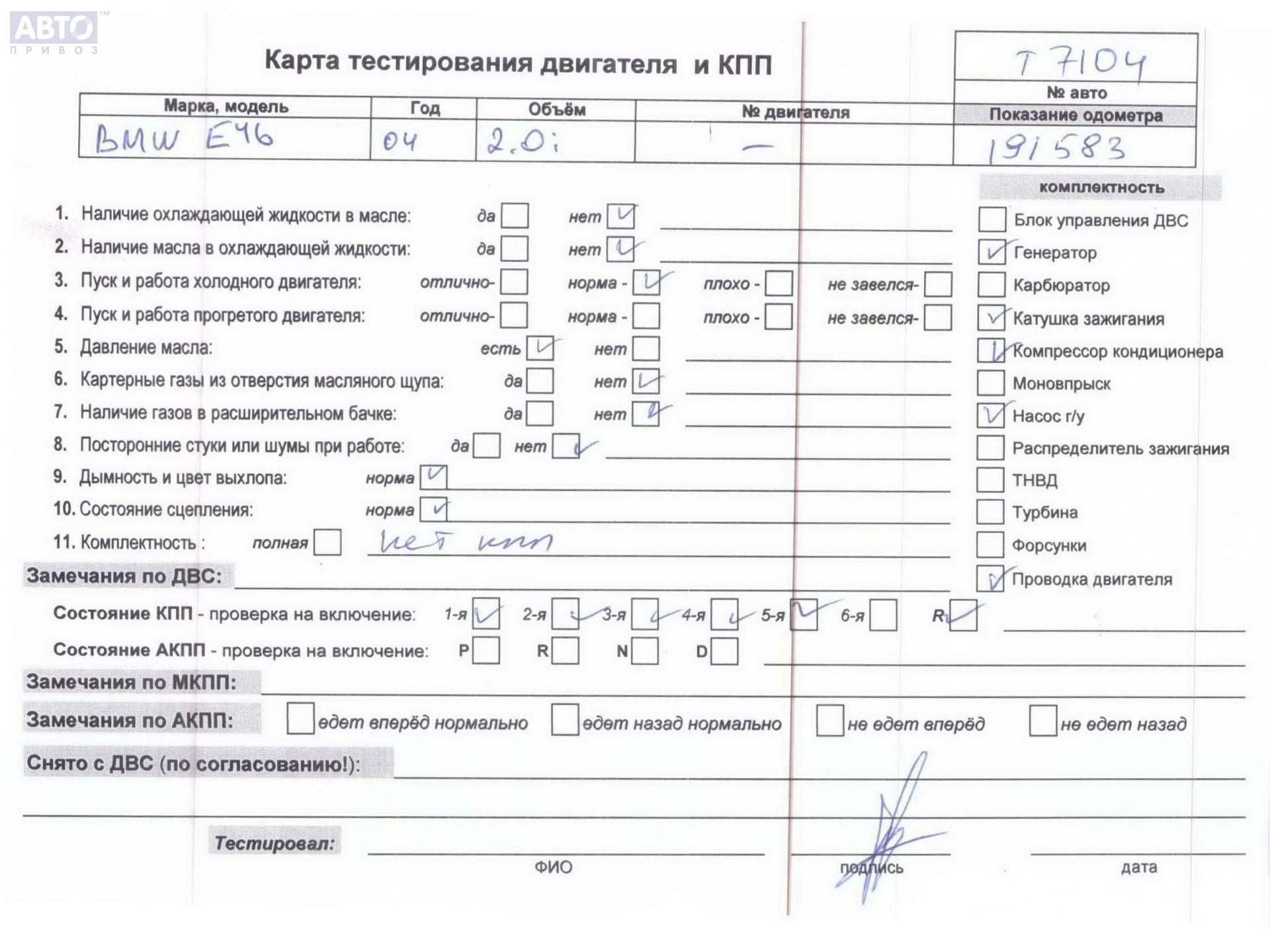 | Марка / Модель / Год: | BMW 3 E46 (1998-2006) 2004 |