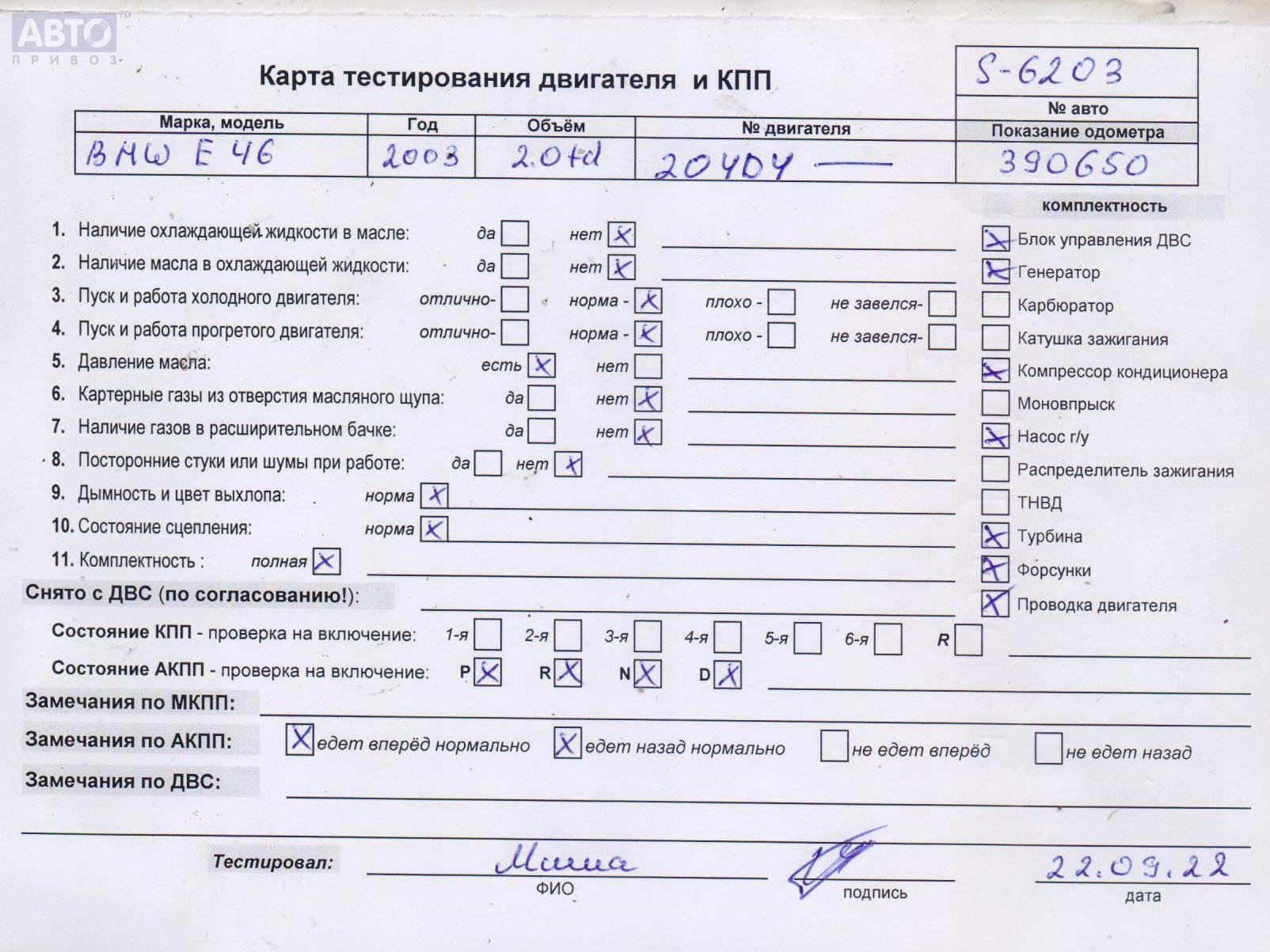| Автомобиль / VIN: | S6203 WBAAP71000PN45918 |