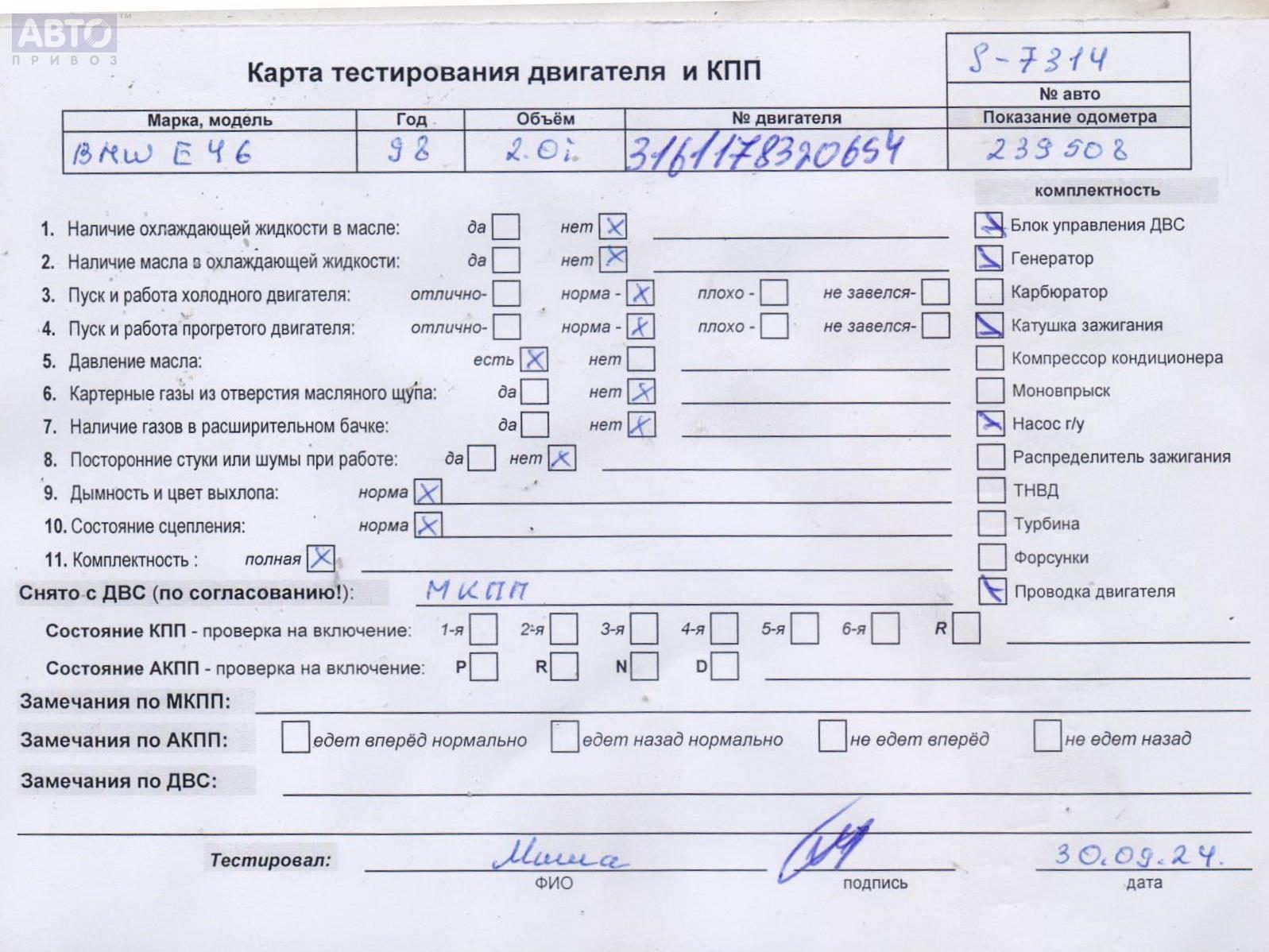 | Автомобиль / VIN: | S7314 WBAAM11000JM30700 |