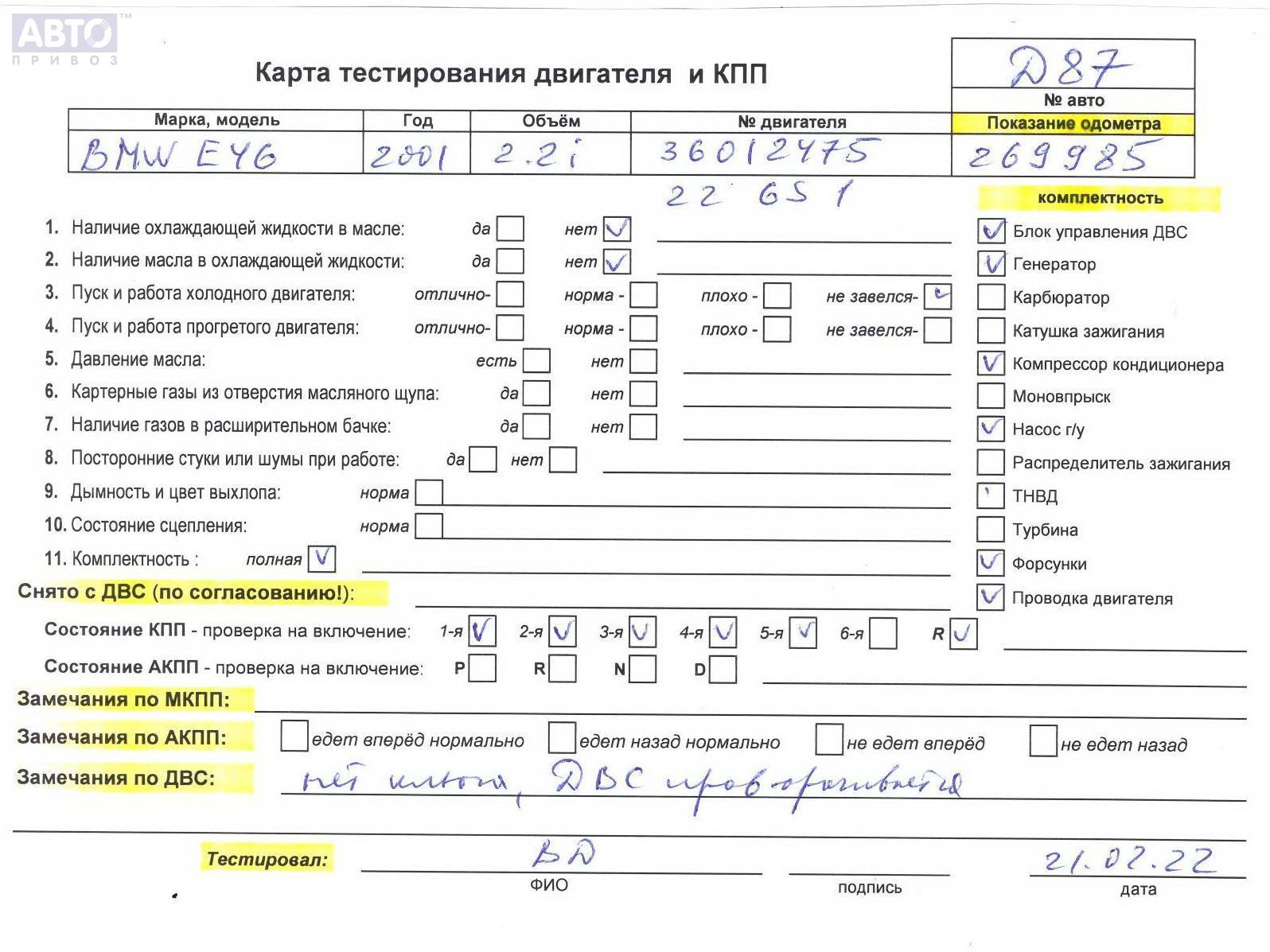 | Автомобиль / VIN: | D0087 WBAAV11050FU01855 |