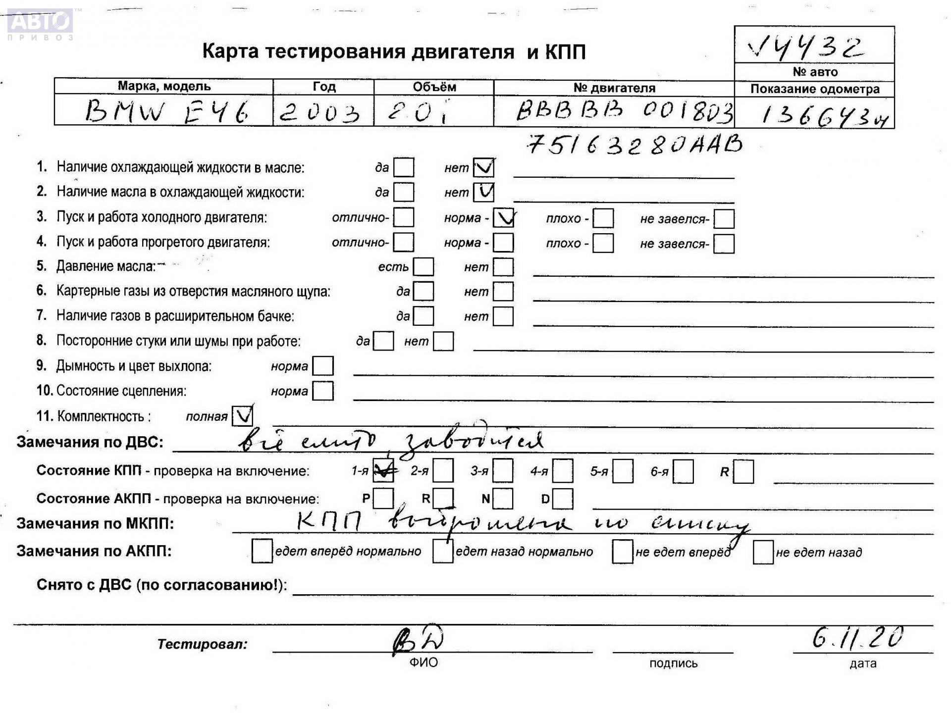 | Марка / Модель / Год: | BMW 3 E46 (1998-2006) 2003 |