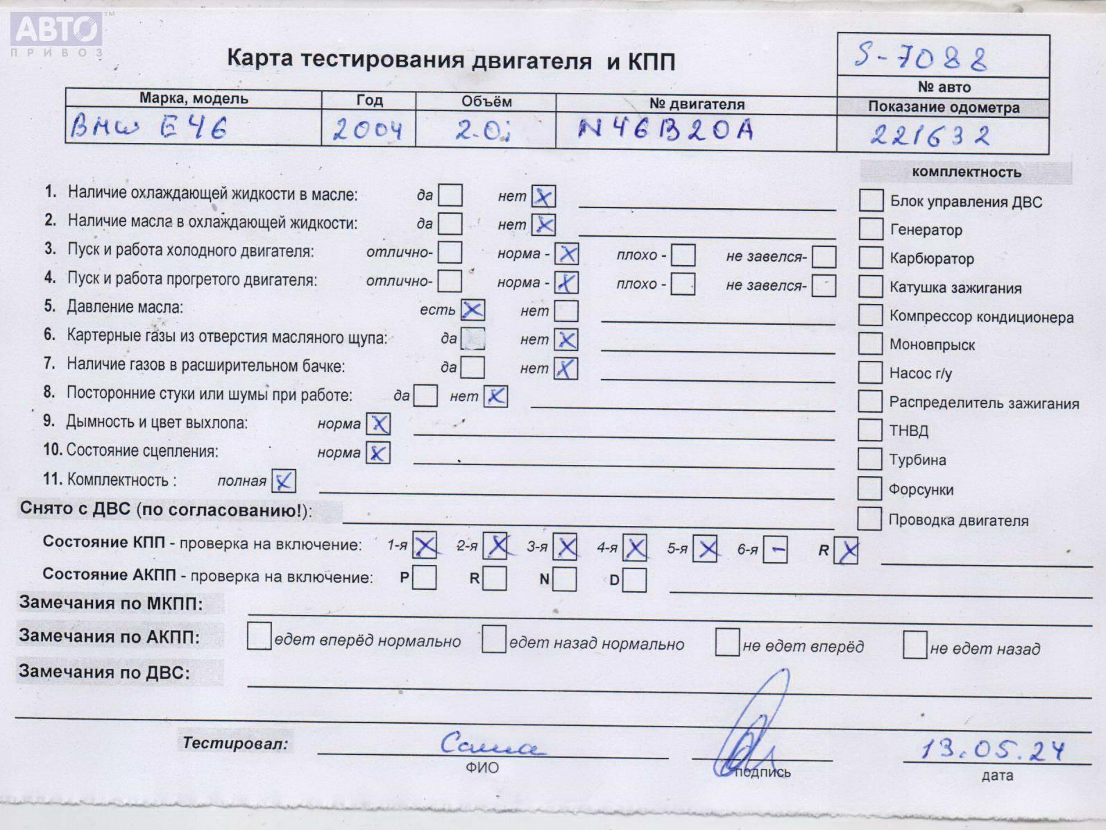 | Марка / Модель / Год: | BMW 3 E46 (1998-2006) 2004 |