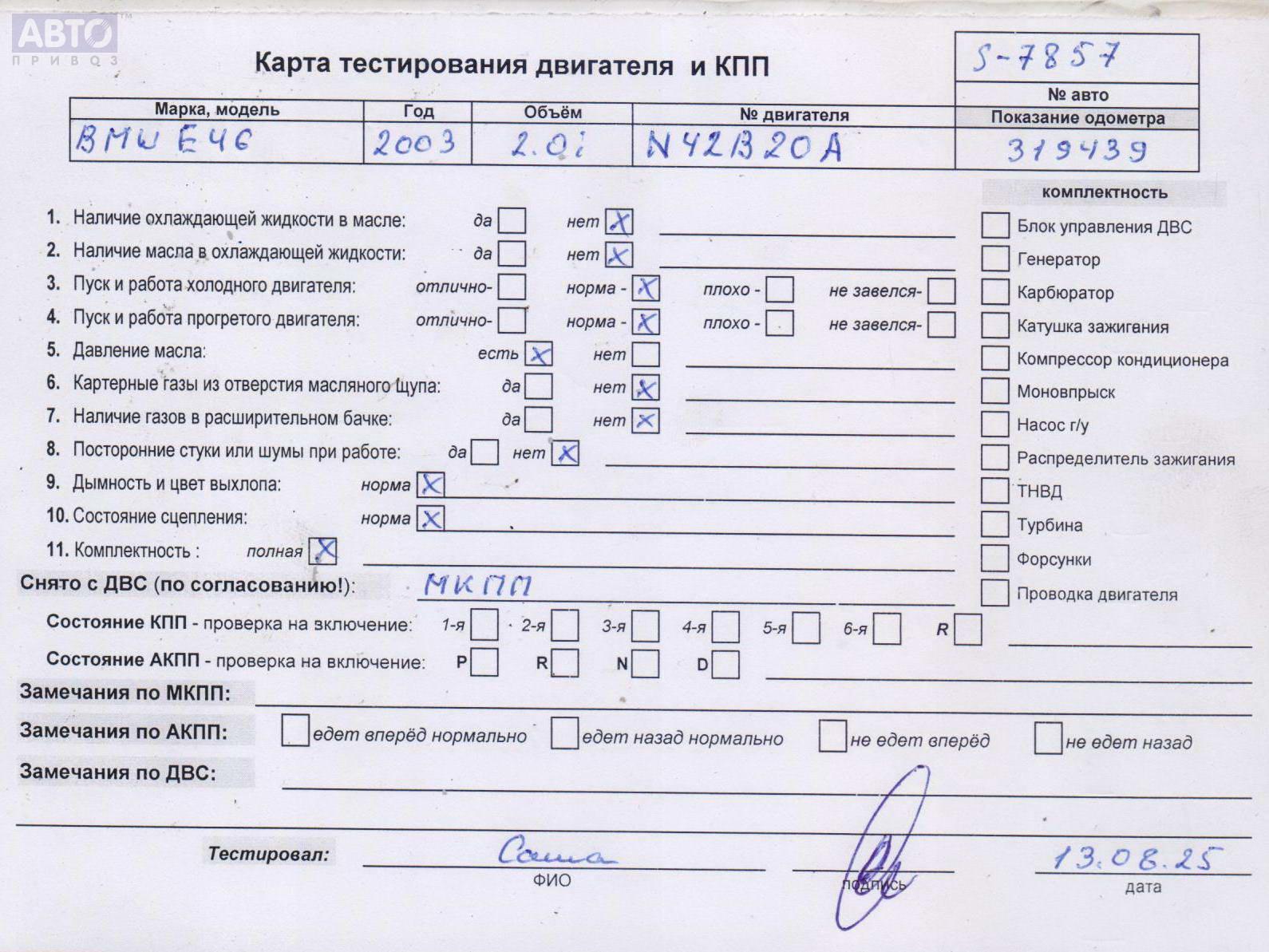 | Автомобиль / VIN: | S7857 WBAAX51020PD44075 |