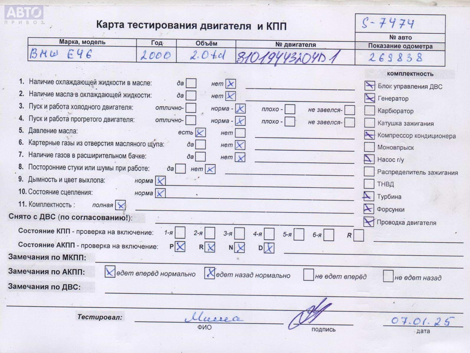 | Марка / Модель / Год: | BMW 3 E46 (1998-2006) 2000 |
