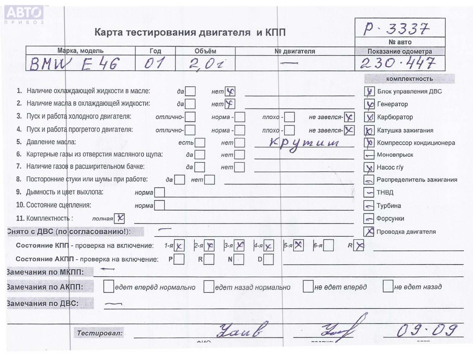 | Автомобиль / VIN: | P3337 WBAAX51010PD31558 |