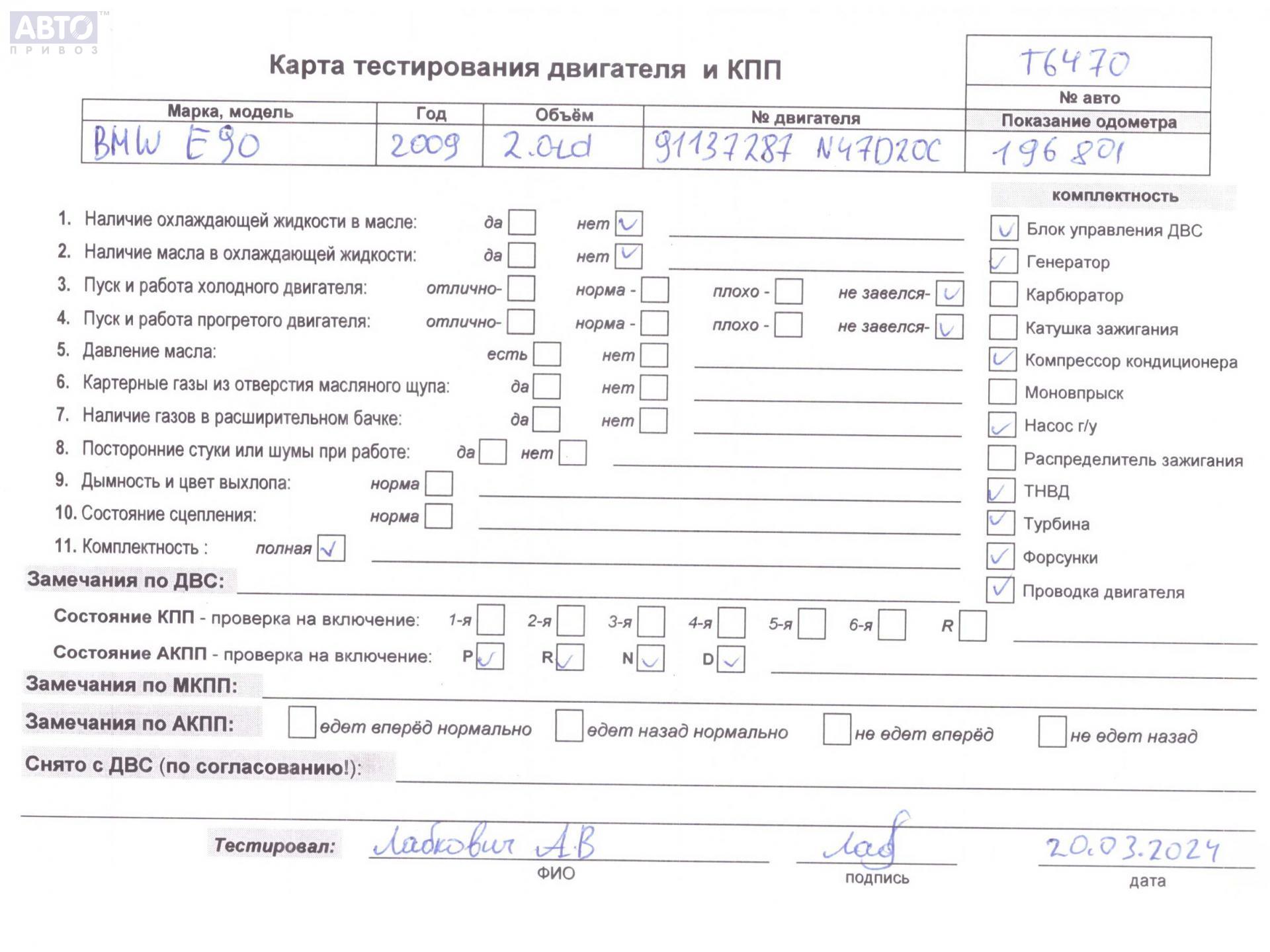 | Автомобиль / VIN: | T6470 WBAPN31070E291631 |