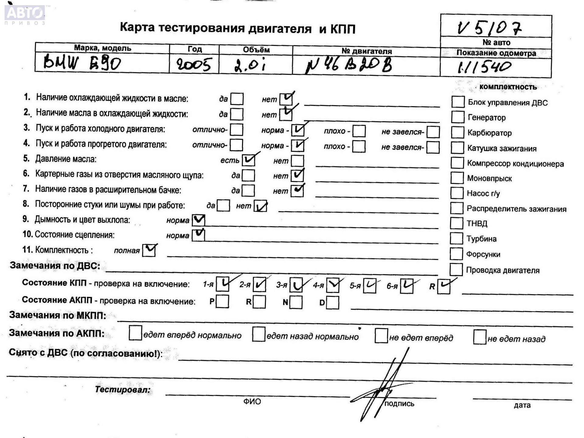 | Автомобиль / VIN: | V5107 WBAVA72010VA46044 |
