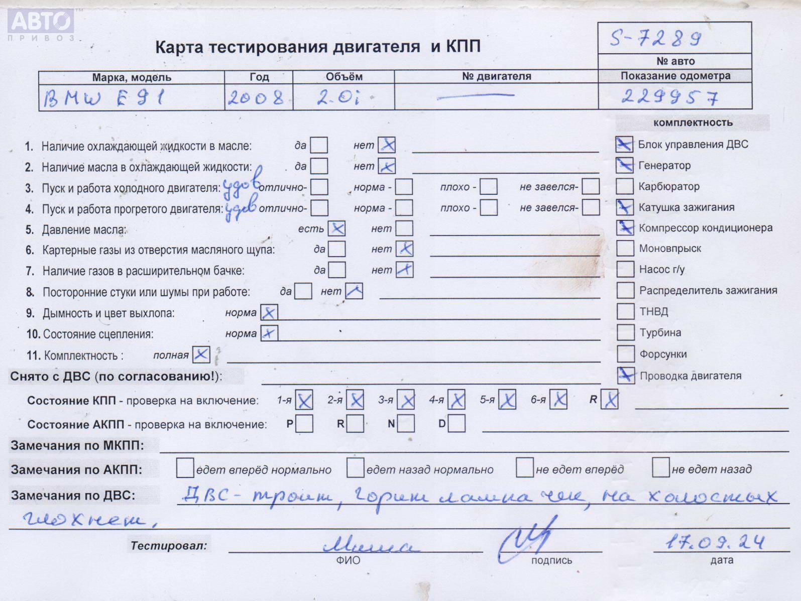 | Автомобиль / VIN: | S7289 WBAVR91080A101762 |