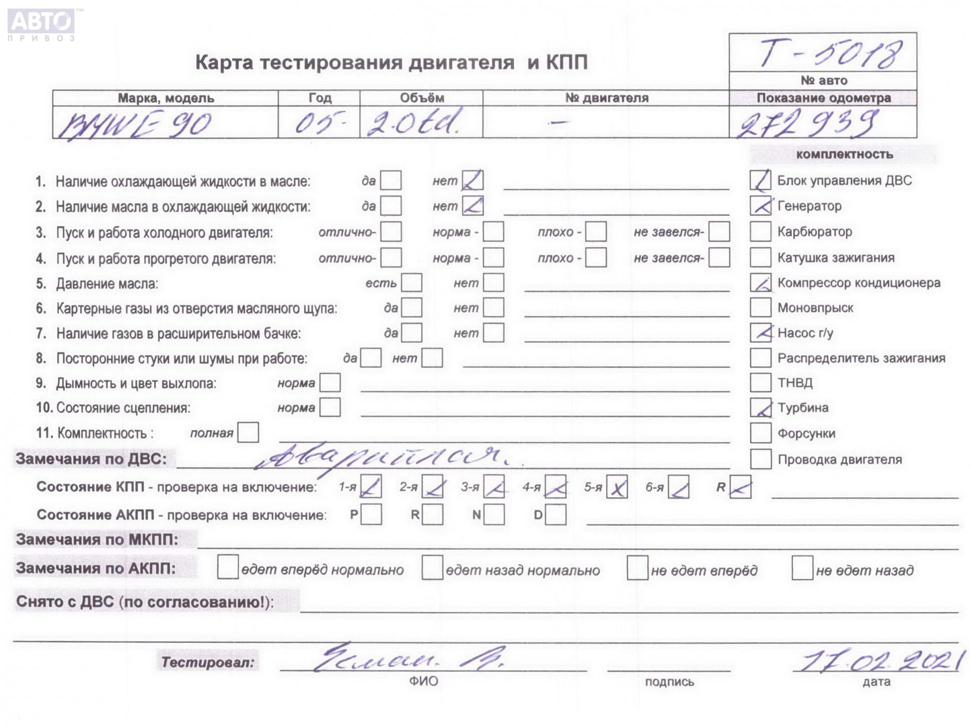 | Автомобиль / VIN: | T5018 WBAVC31040VB76615 |