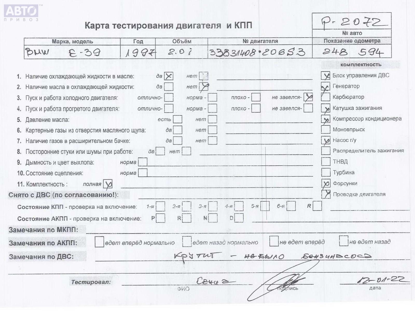 | Автомобиль / VIN: | P2072 WBADD11050BN23638 |