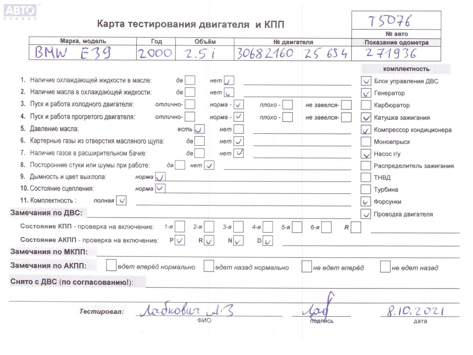 | Марка / Модель / Год: | BMW 5 E39 (1995-2003) 2000 |