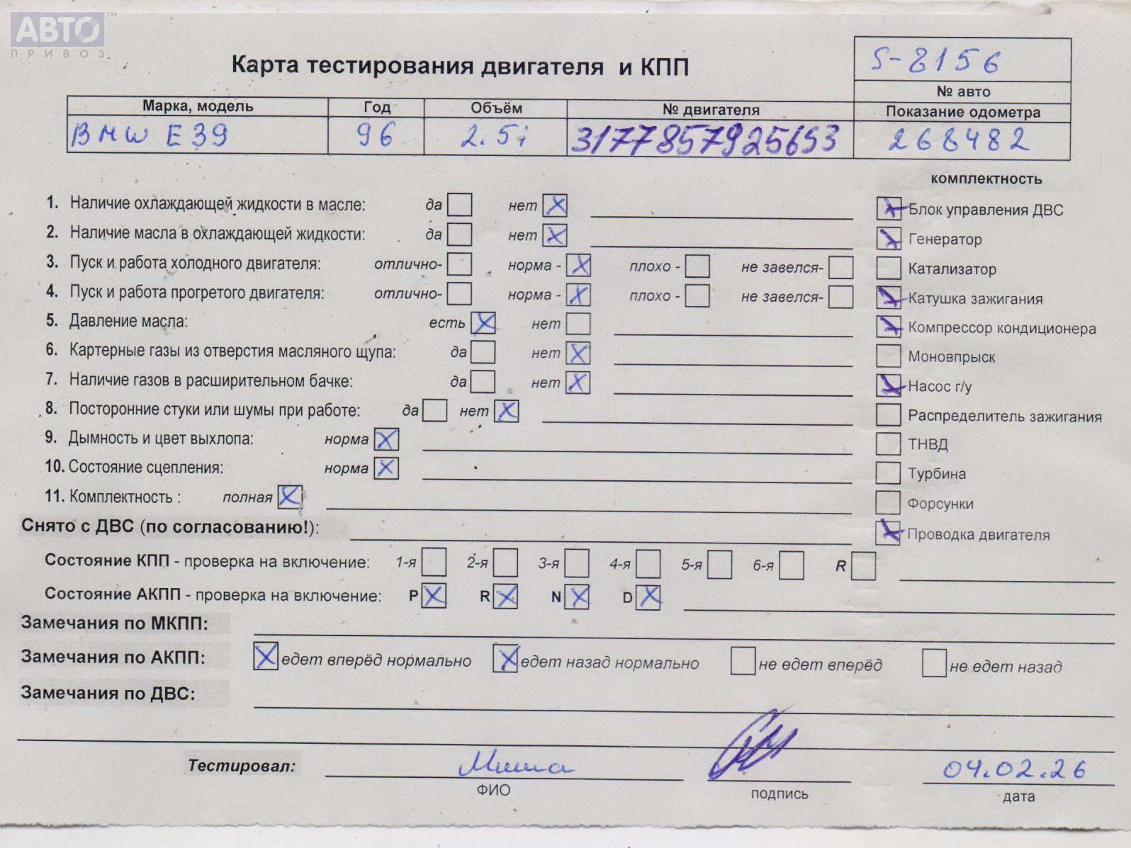 | Автомобиль / VIN: | S8156 WBADD41040BT38658 |