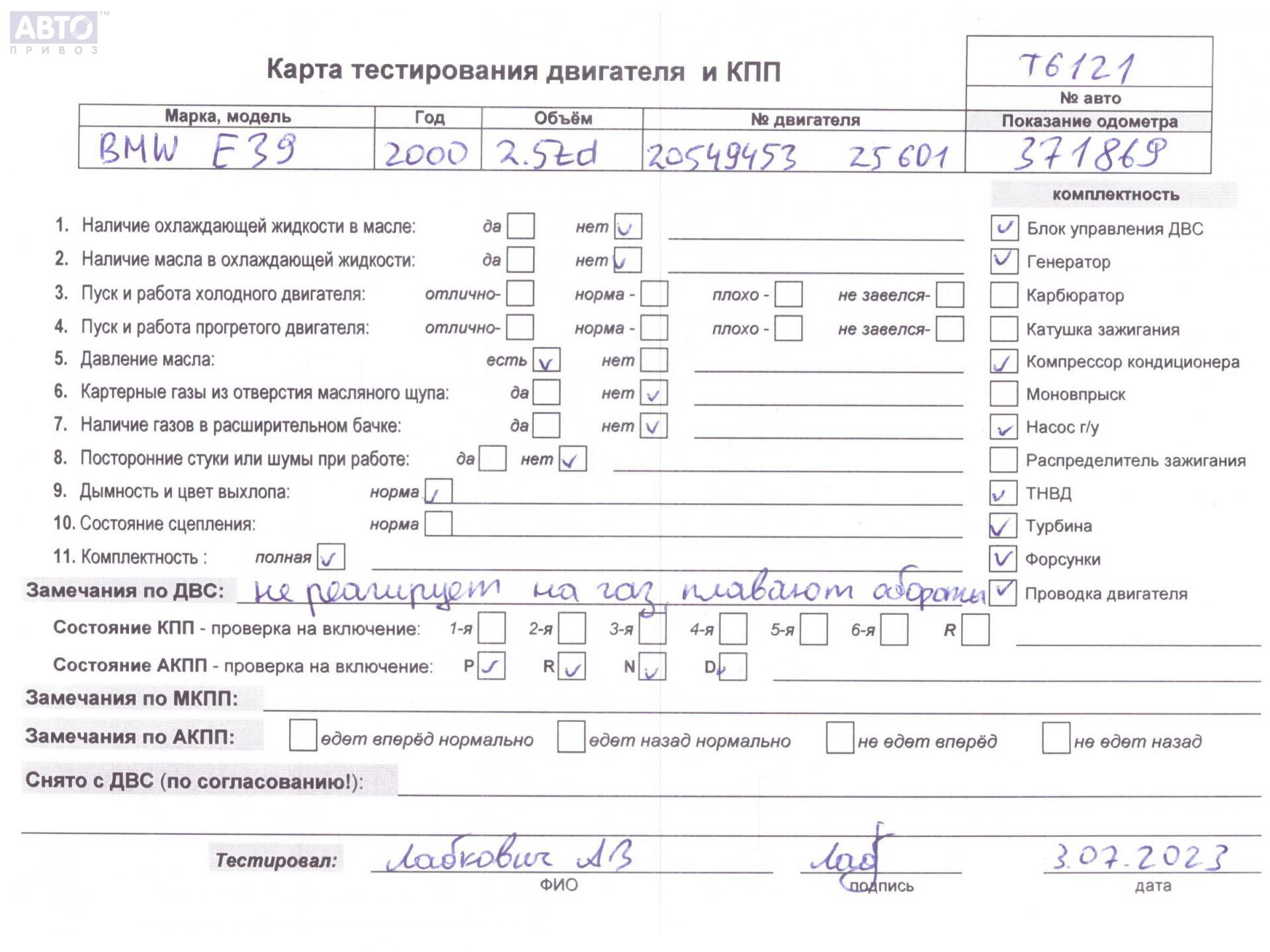 | Автомобиль / VIN: | T6121 WBADL01050GY01101 |