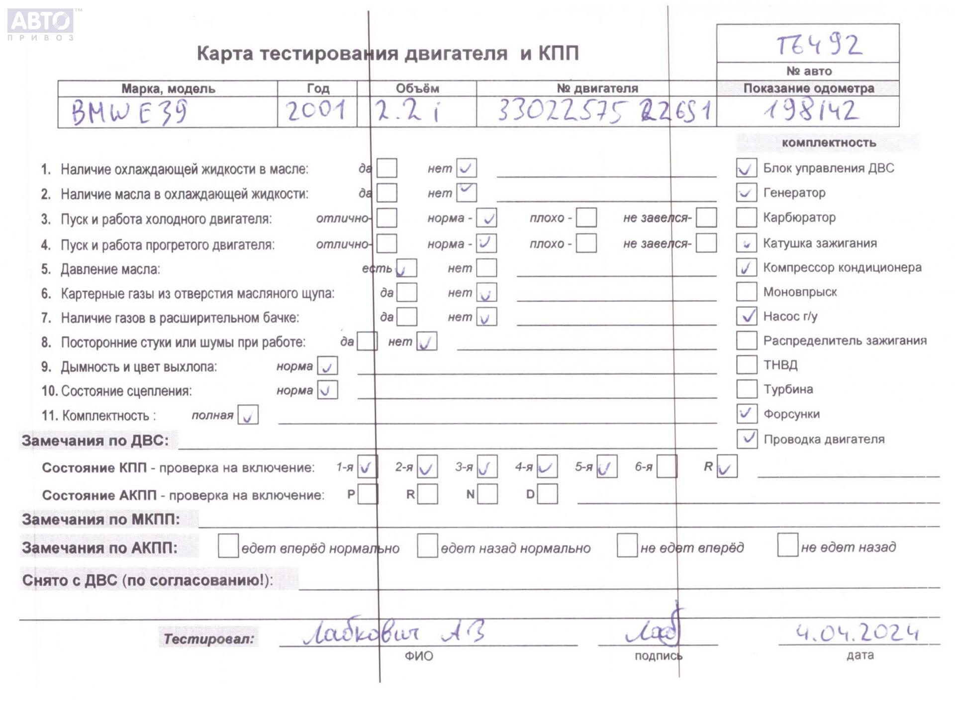 | Марка / Модель / Год: | BMW 5 E39 (1995-2003) 2001 |