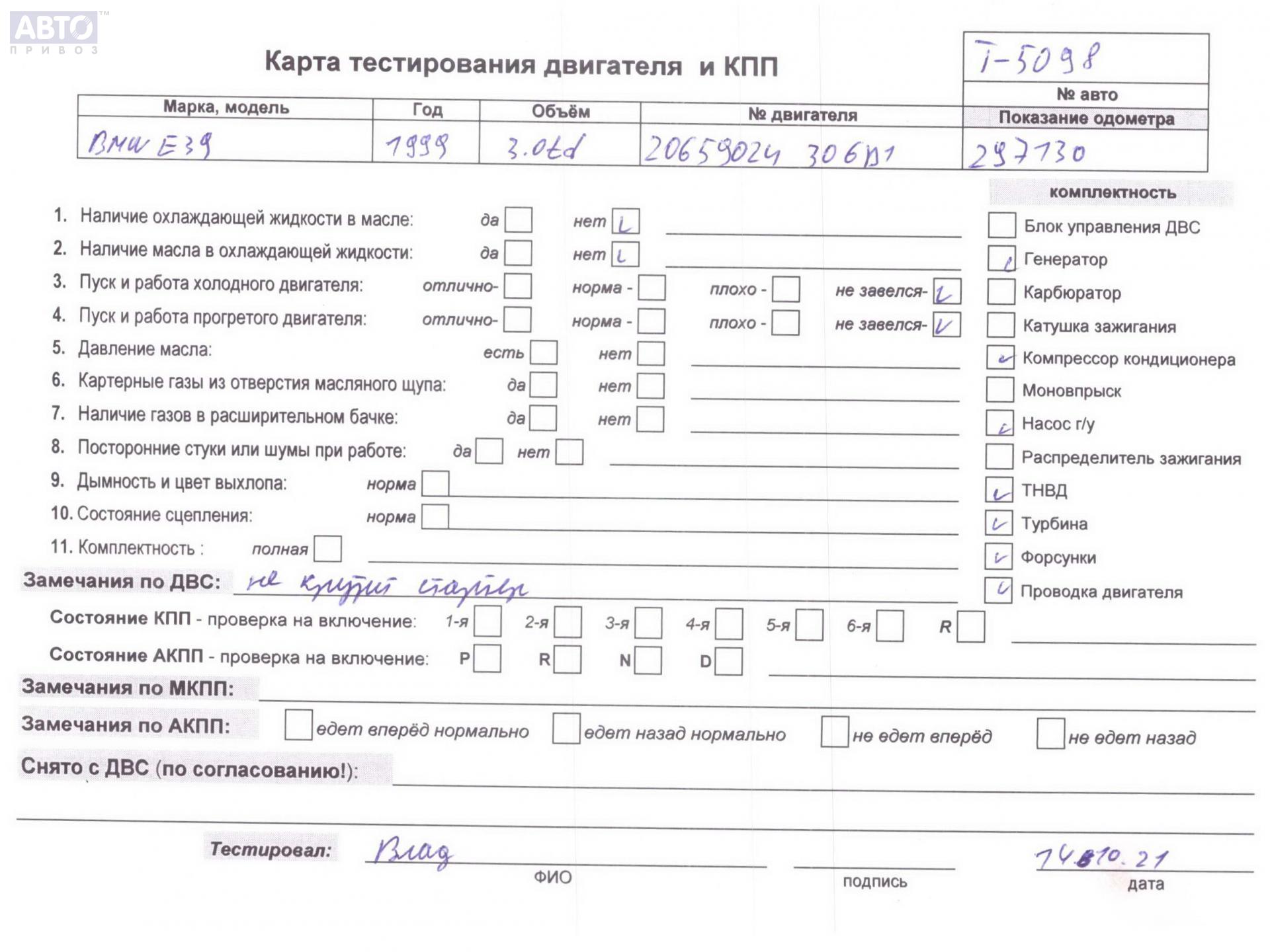 | Автомобиль / VIN: | T5098 WBADL71030GM75467 |