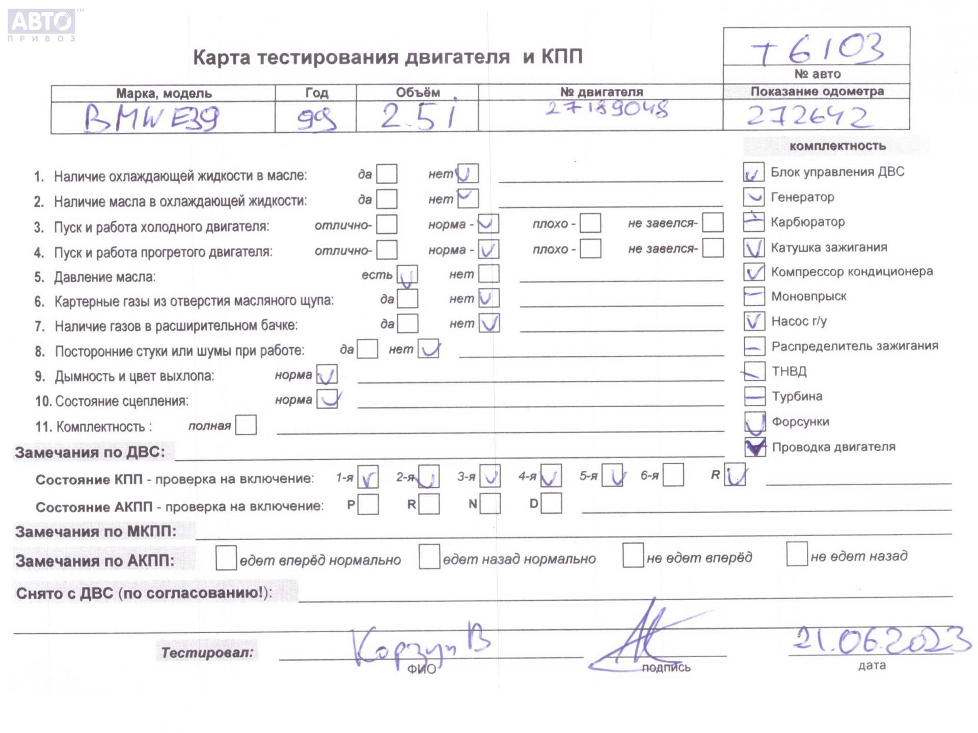 | Марка / Модель / Год: | BMW 5 E39 (1995-2003) 1999 |