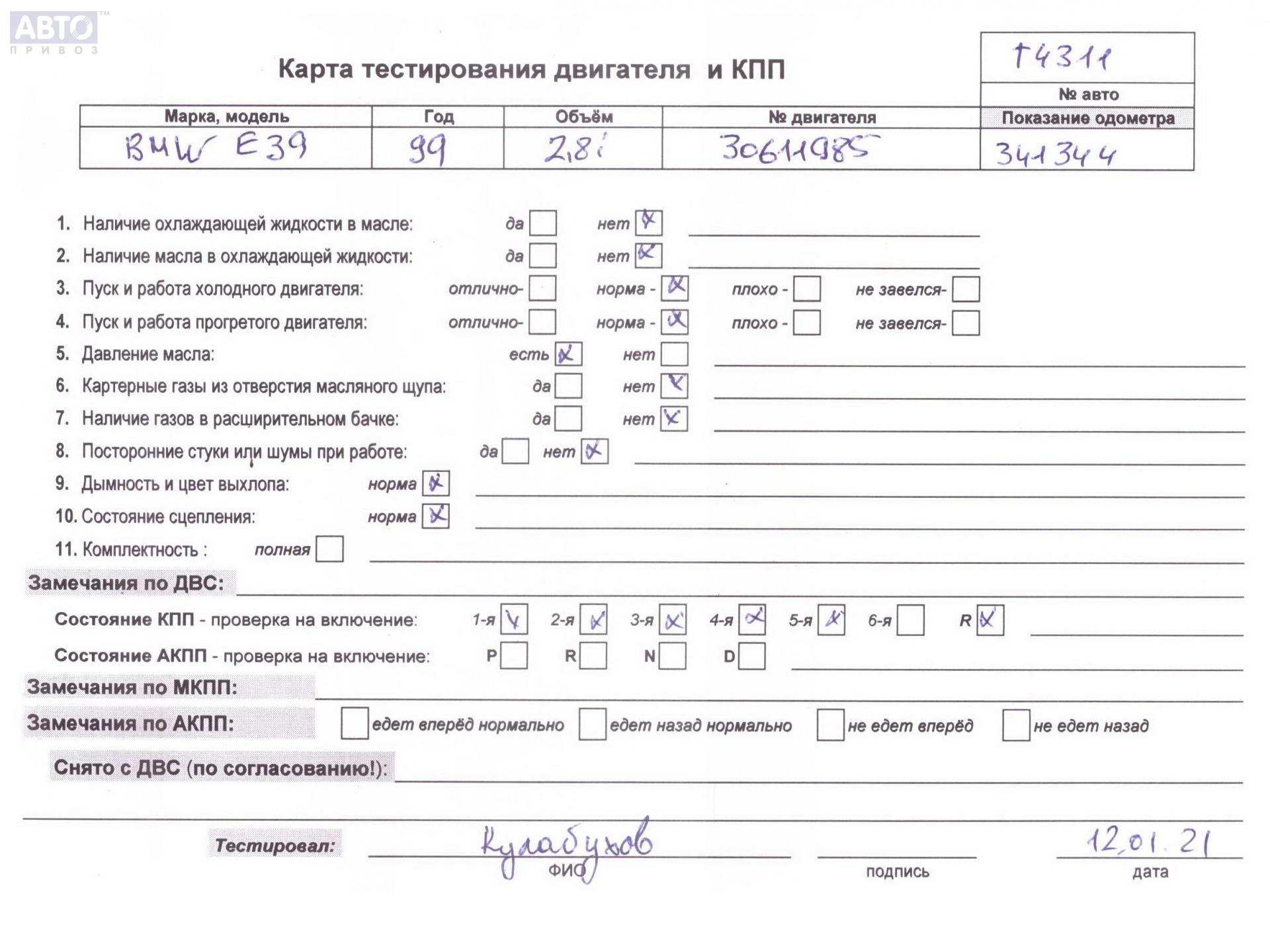 | Марка / Модель / Год: | BMW 5 E39 (1995-2003) 1999 |