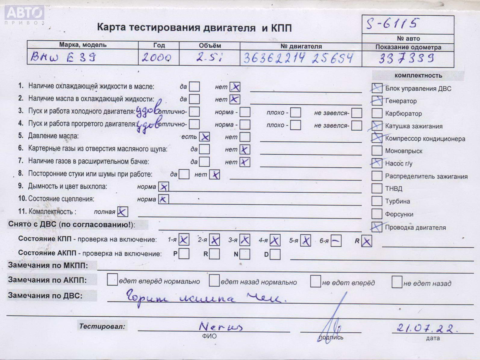 | Марка / Модель / Год: | BMW 5 E39 (1995-2003) 2000 |