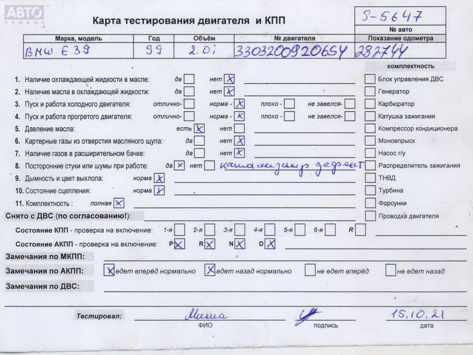 | Марка / Модель / Год: | BMW 5 E39 (1995-2003) 1999 |