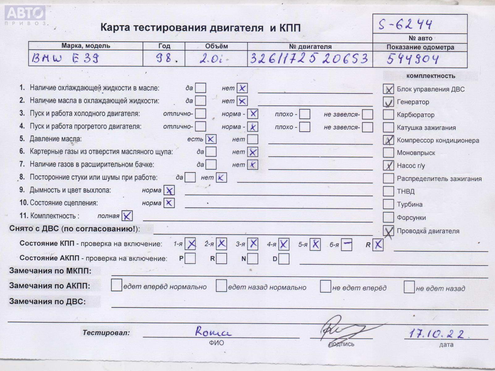 | Автомобиль / VIN: | S6244 WBADH11040BX72467 |
