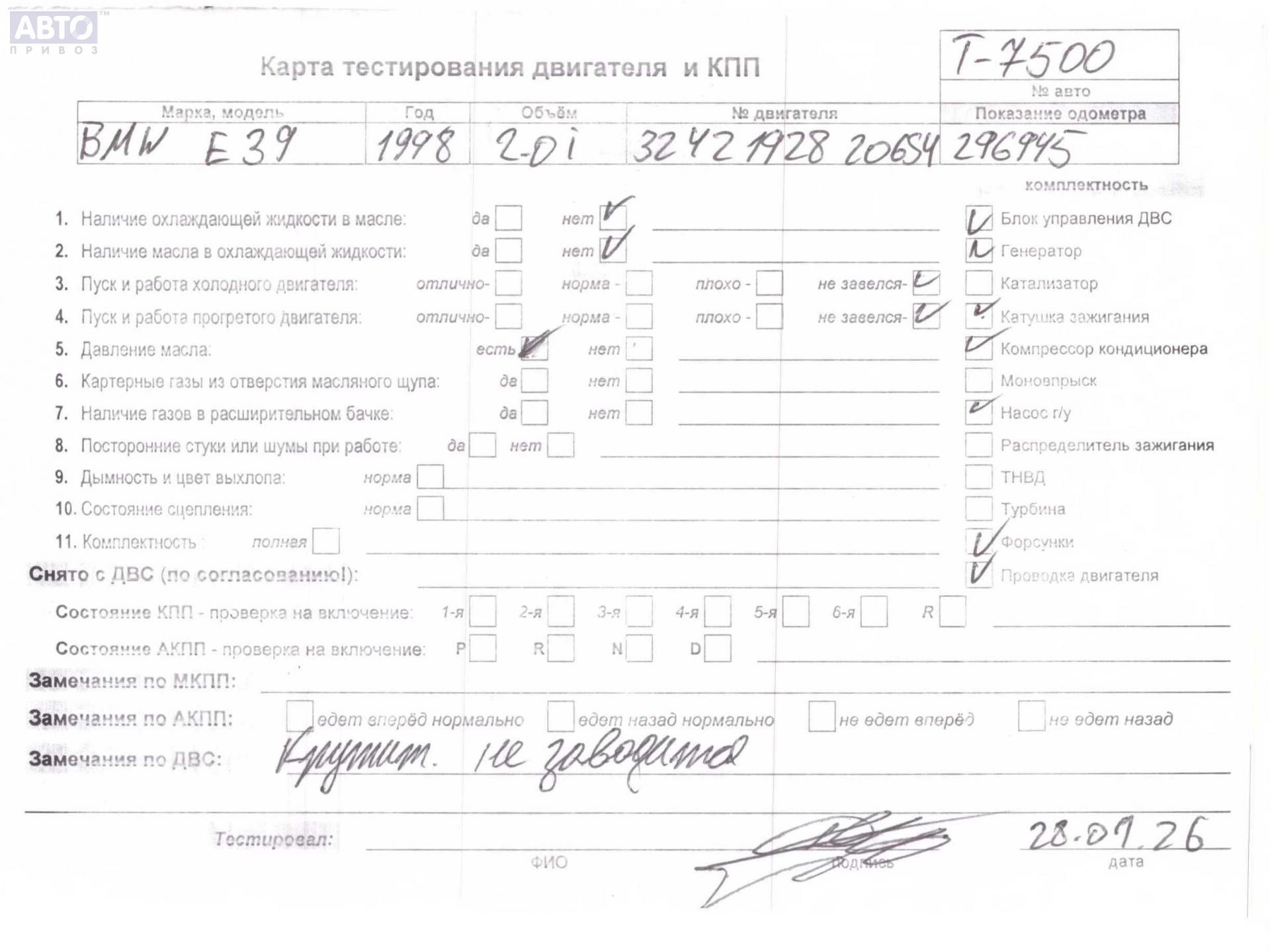 | Примечания: | 206S4, M52TUB20, 90A, трещина на задней крышке |