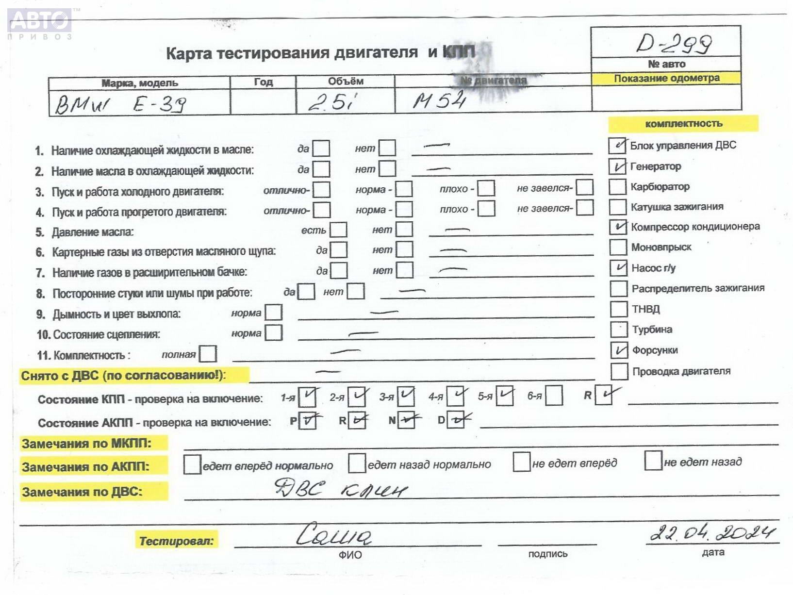 | Марка / Модель / Год: | BMW 5 E39 (1995-2003) 2001 |
