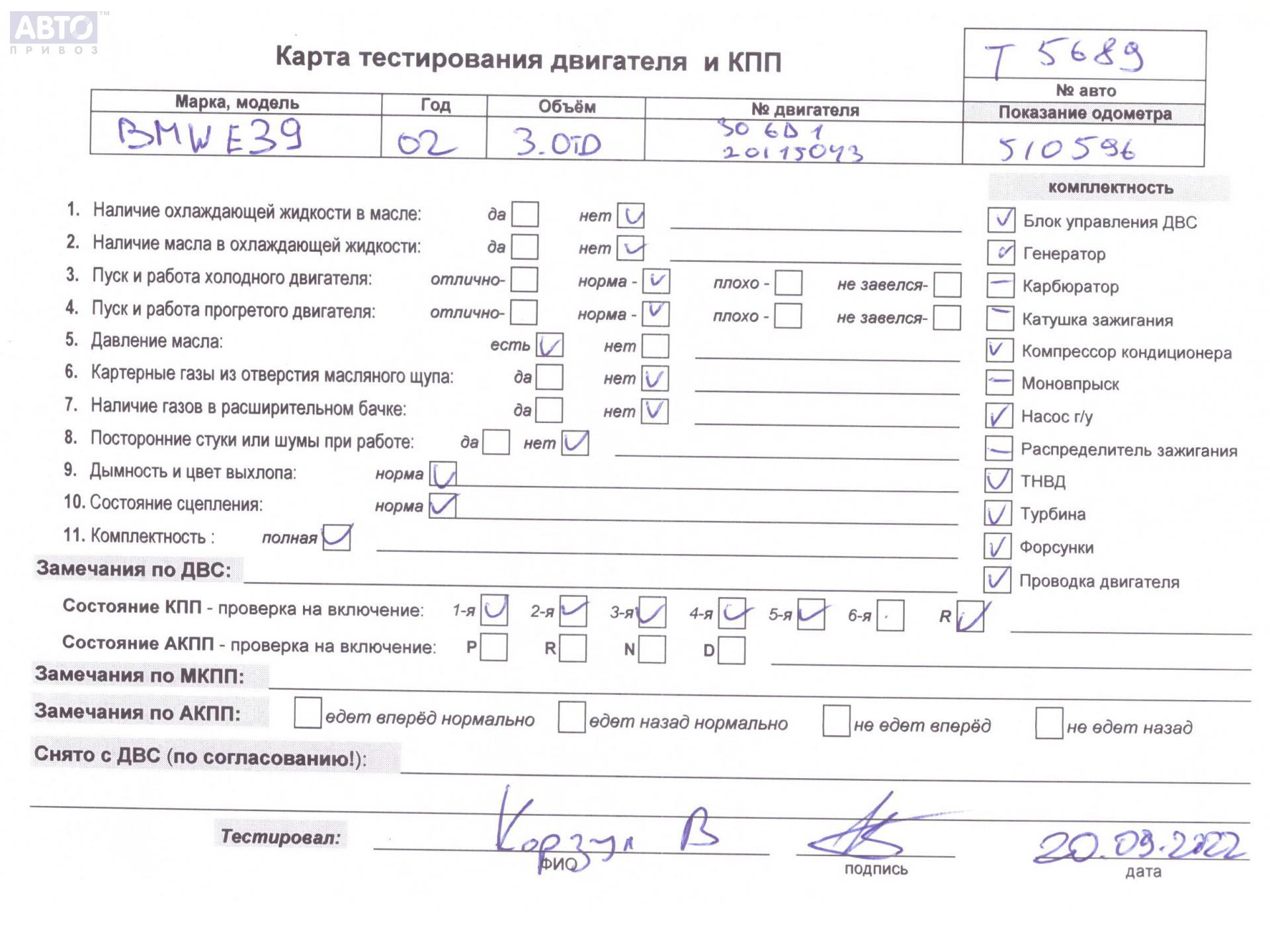 | Марка / Модель / Год: | BMW 5 E39 (1995-2003) 2002 |