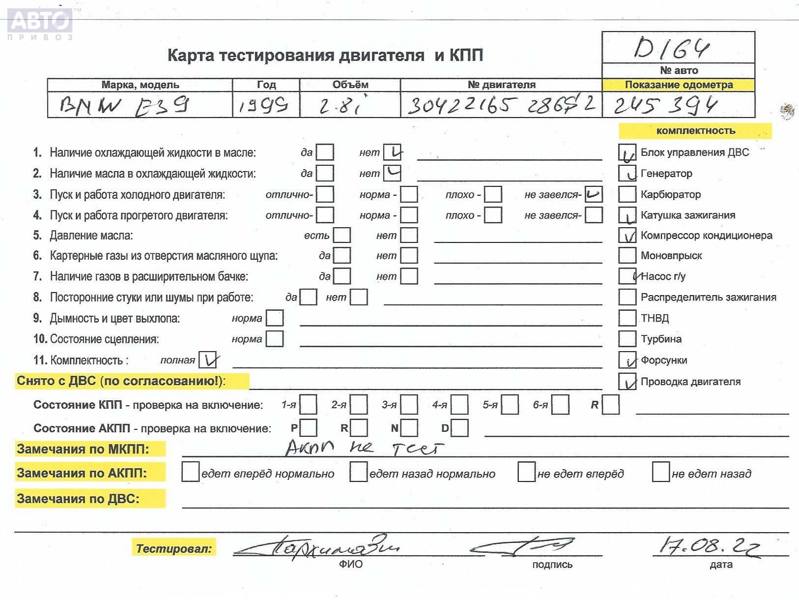 | Марка / Модель / Год: | BMW 5 E39 (1995-2003) 1999 |