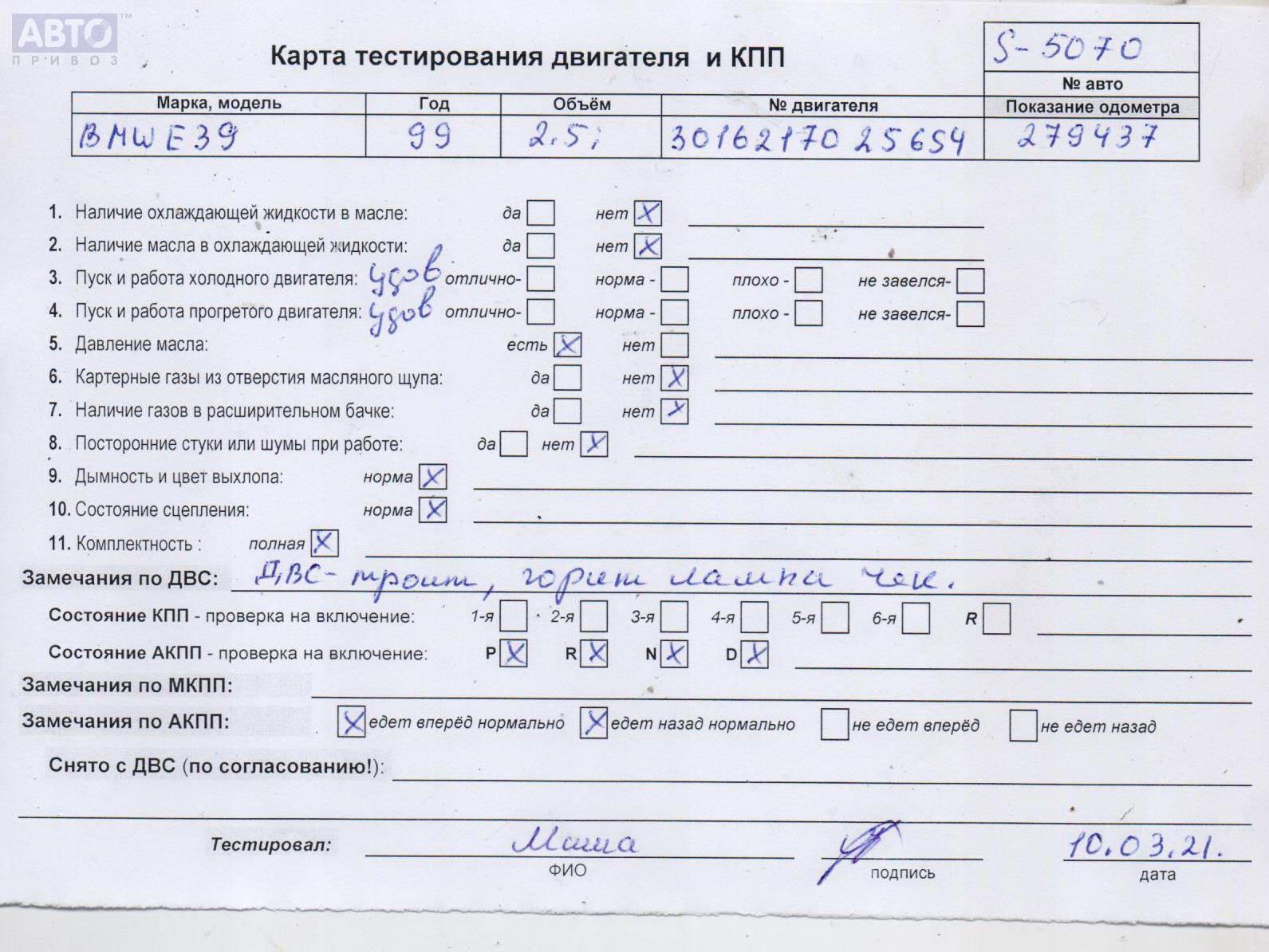 | Марка / Модель / Год: | BMW 5 E39 (1995-2003) 2000 |
