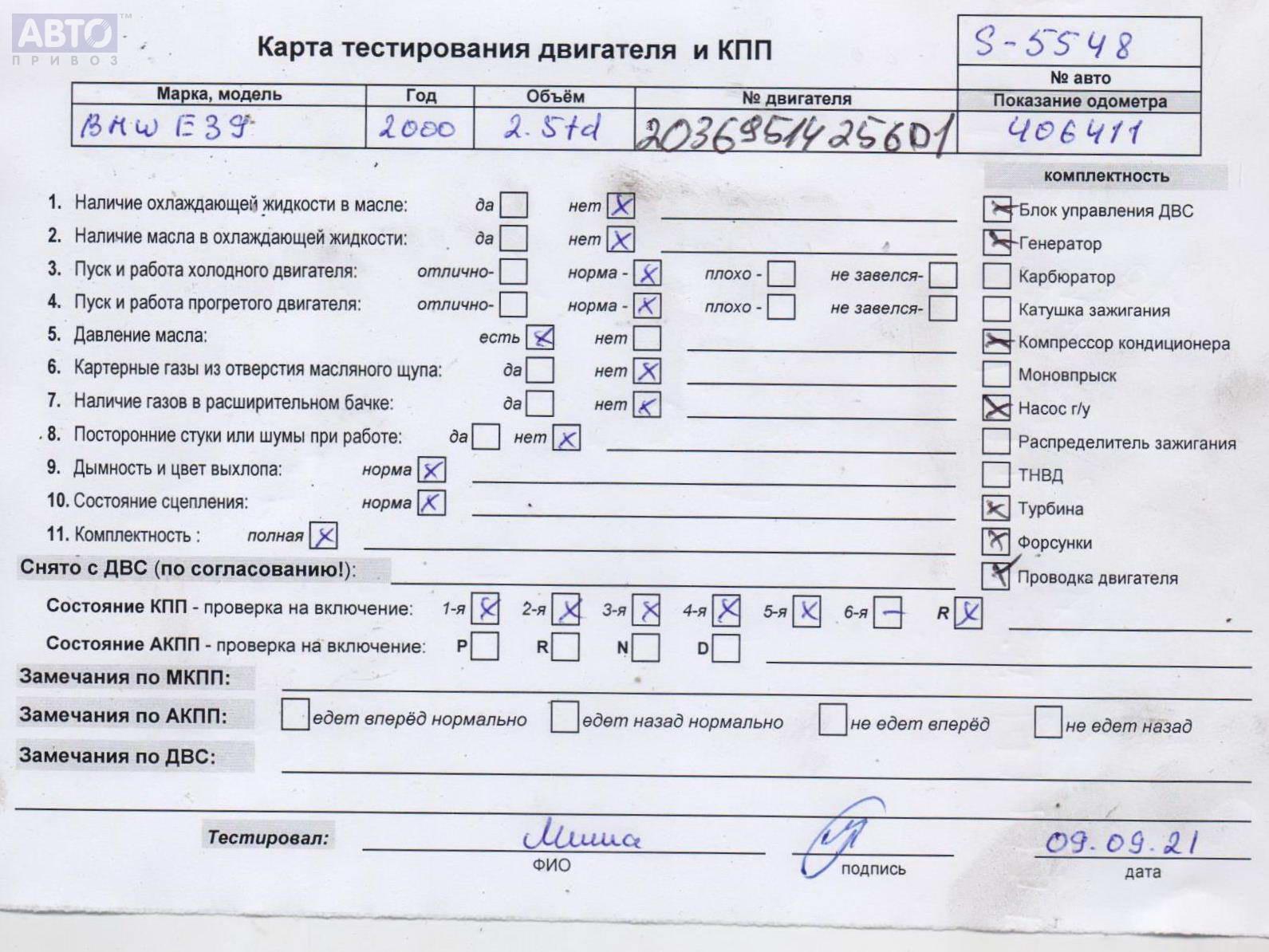 | Марка / Модель / Год: | BMW 5 E39 (1995-2003) 2000 |
