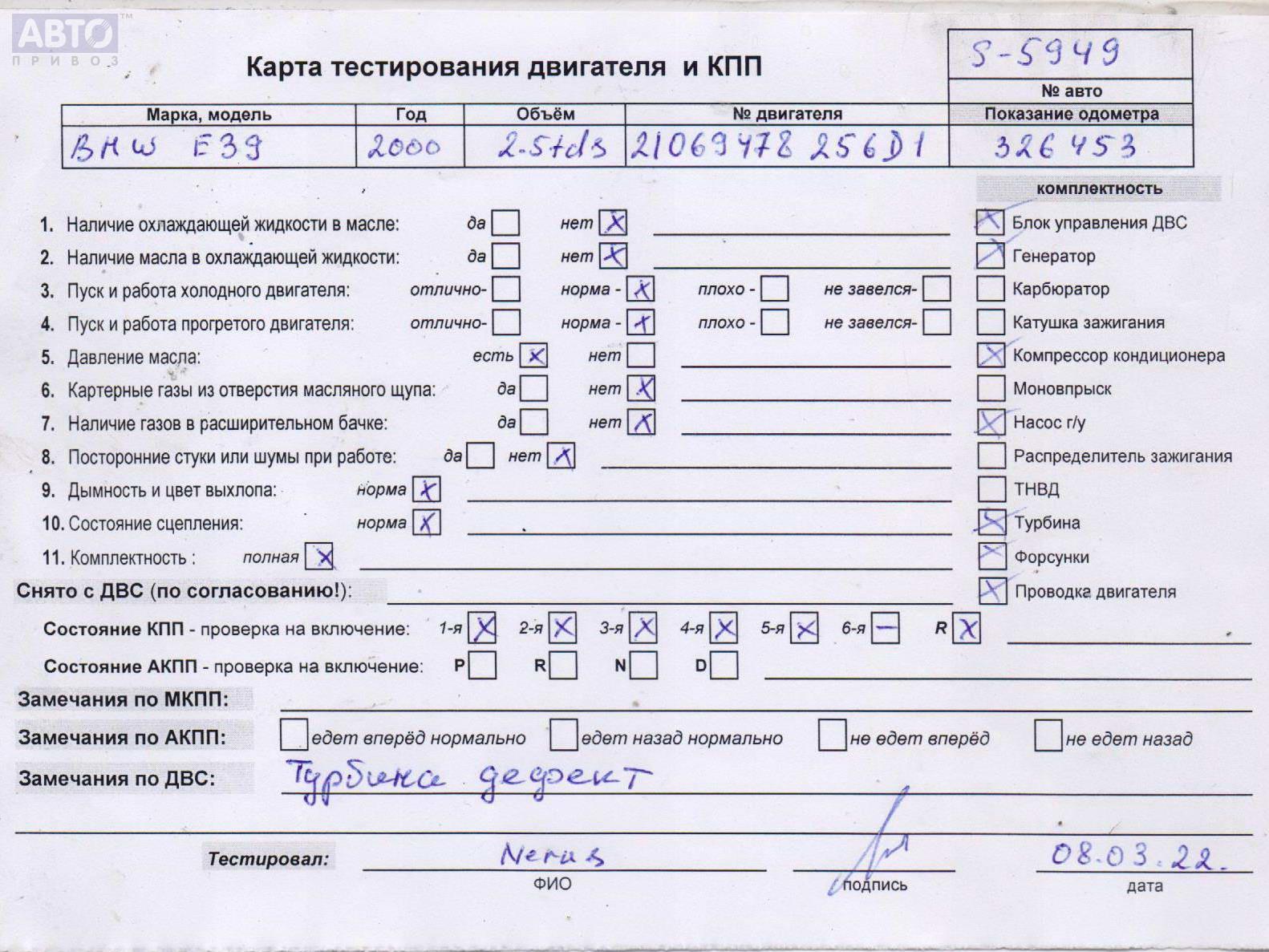 | Марка / Модель / Год: | BMW 5 E39 (1995-2003) 2000 |