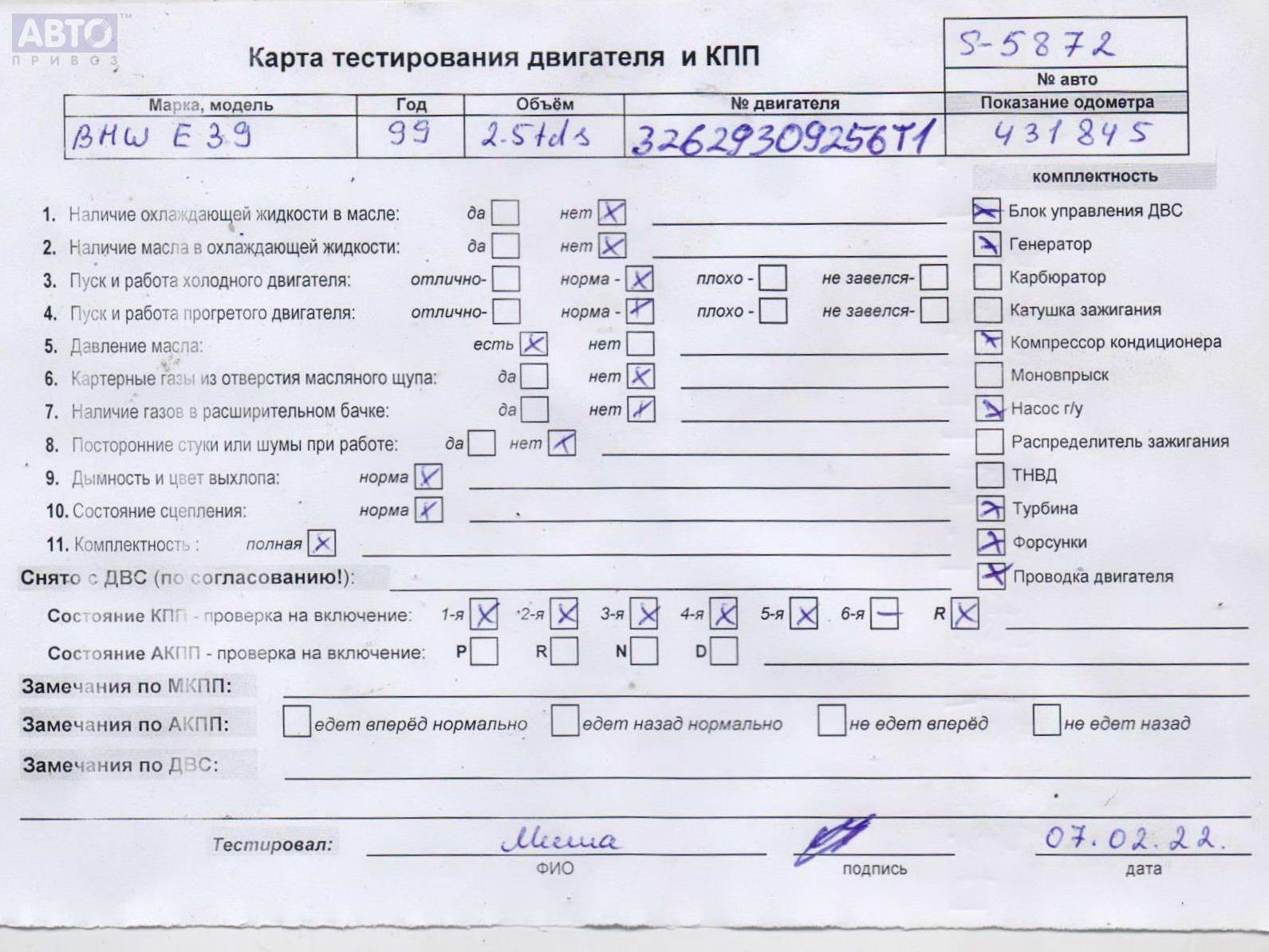 | Марка / Модель / Год: | BMW 5 E39 (1995-2003) 1999 |