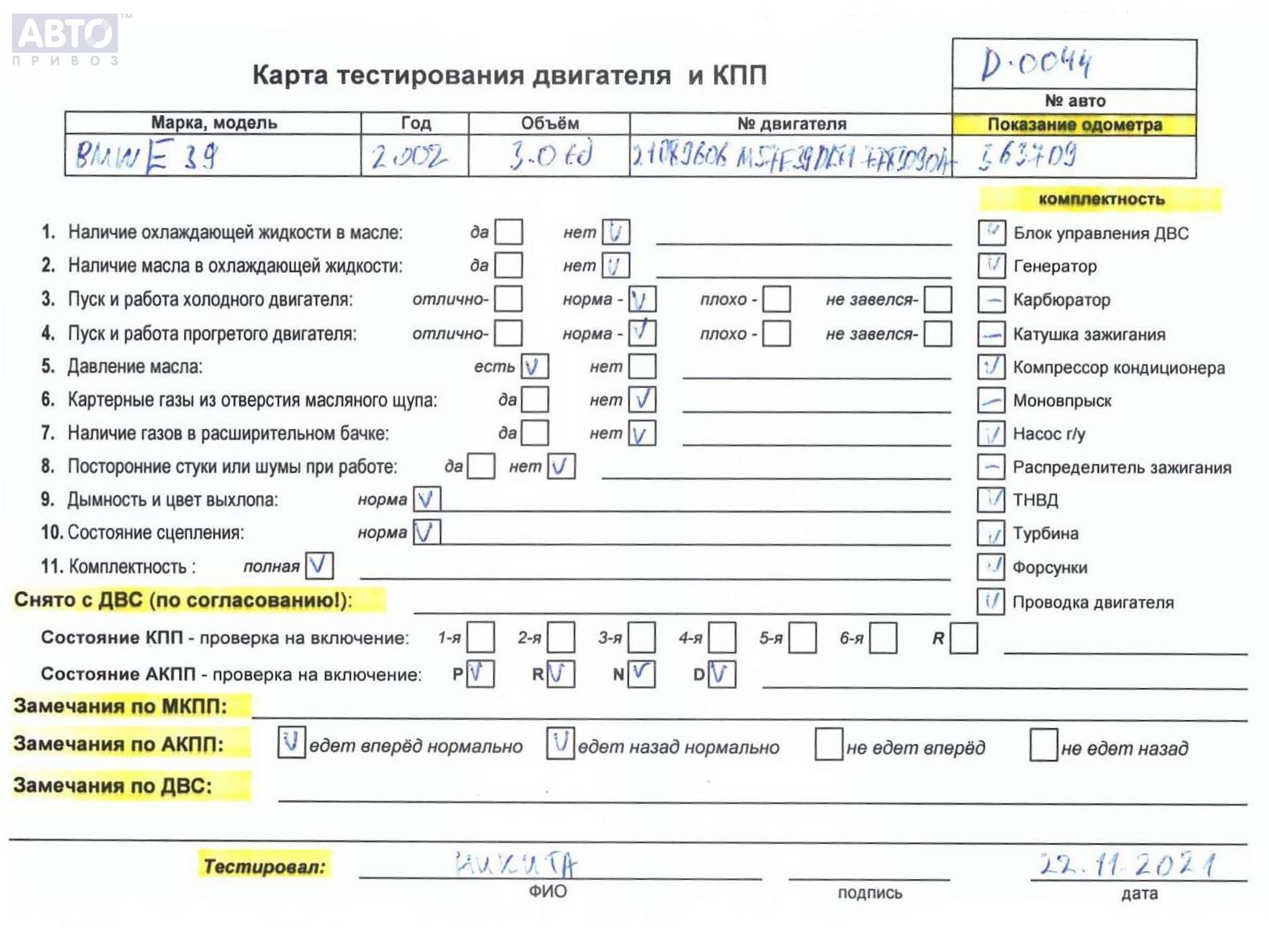 | Марка / Модель / Год: | BMW 5 E39 (1995-2003) 2001 |