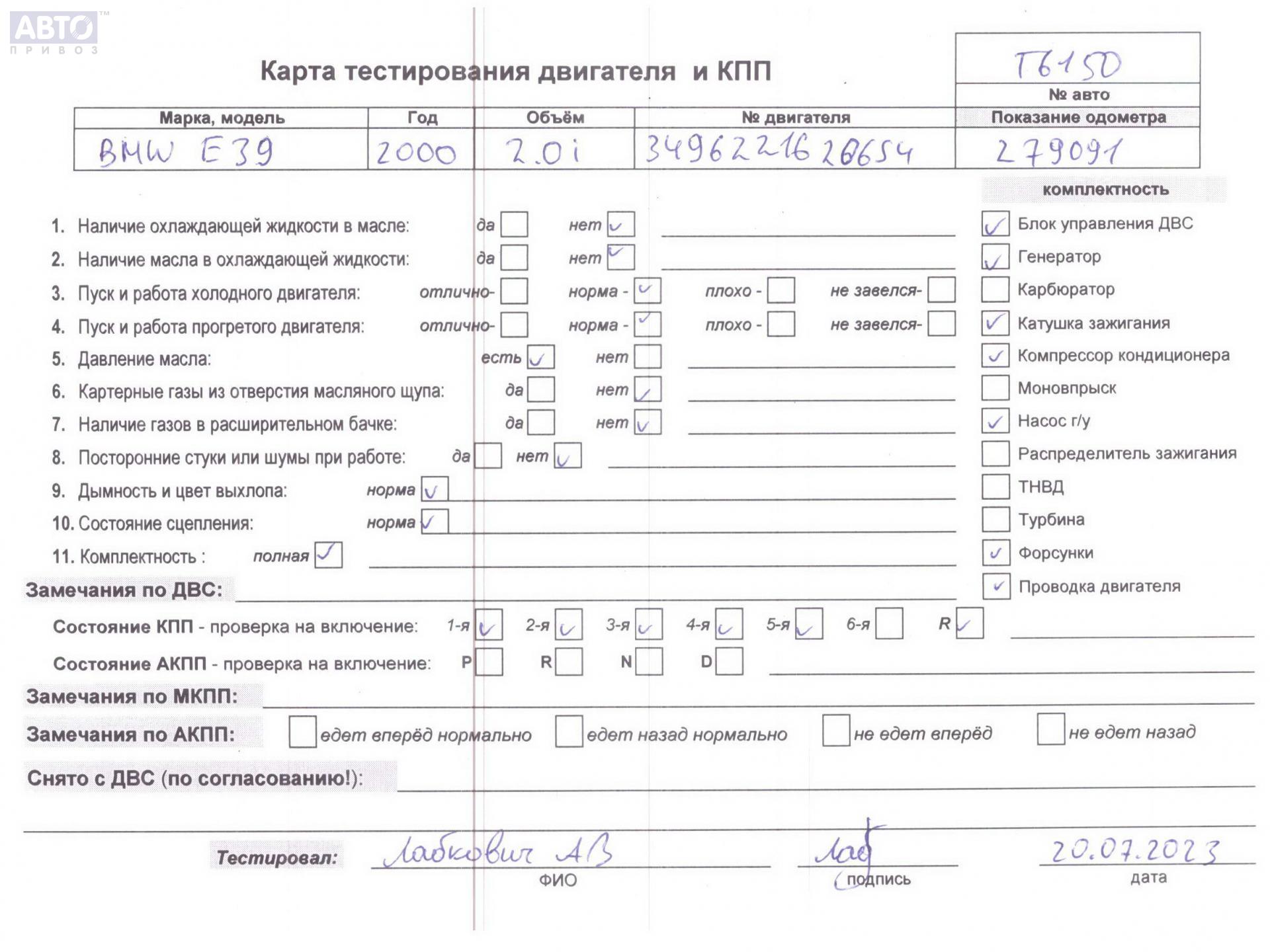 | Марка / Модель / Год: | BMW 5 E39 (1995-2003) 2000 |