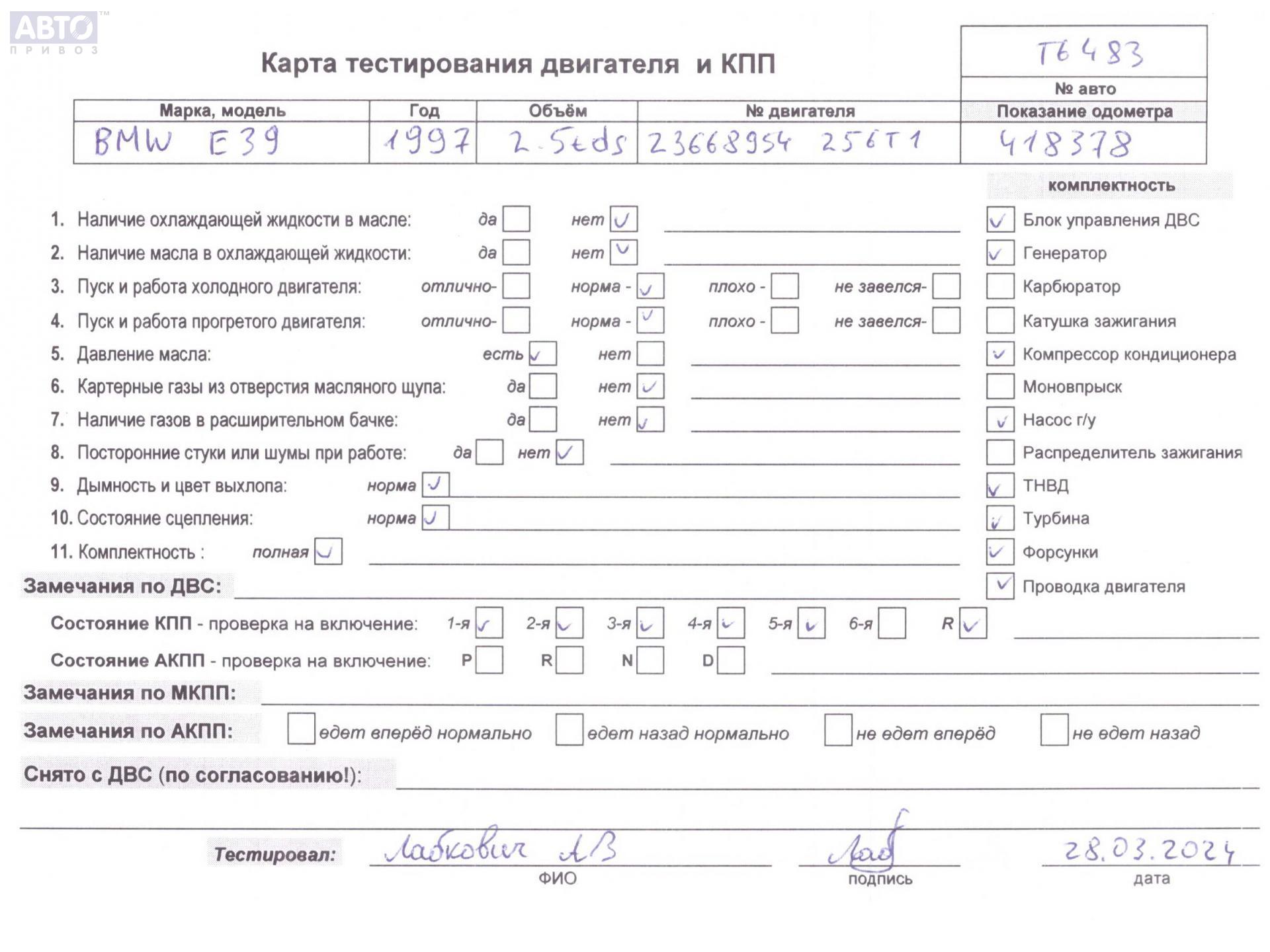| Марка / Модель / Год: | BMW 5 E39 (1995-2003) 1998 |
