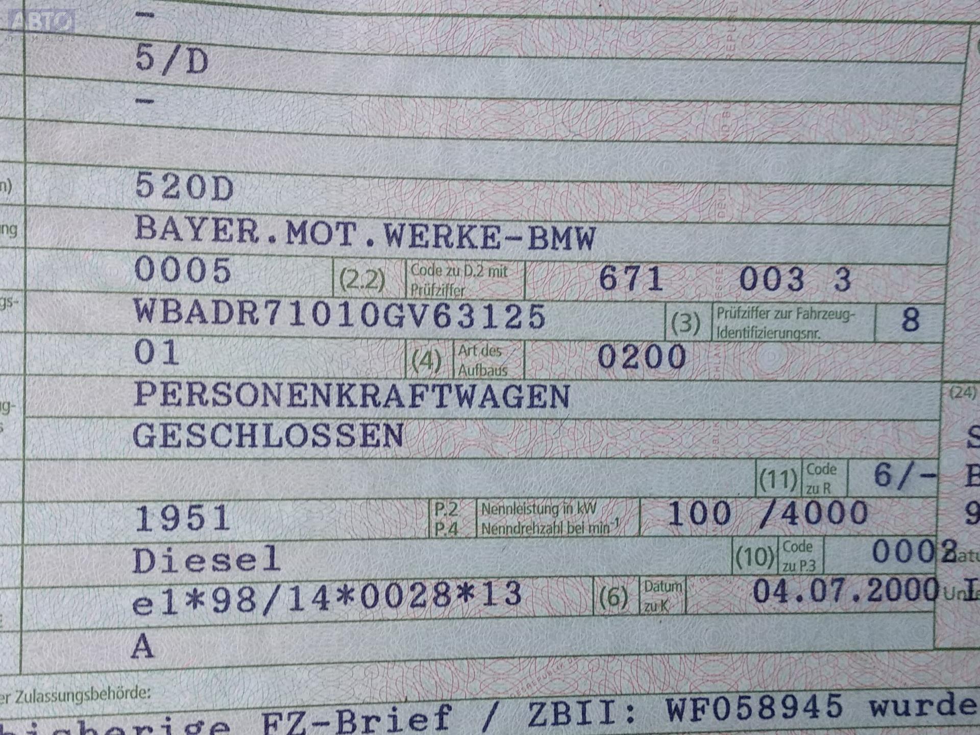 | Марка / Модель / Год: | BMW 5 E39 (1995-2003) 2001 |