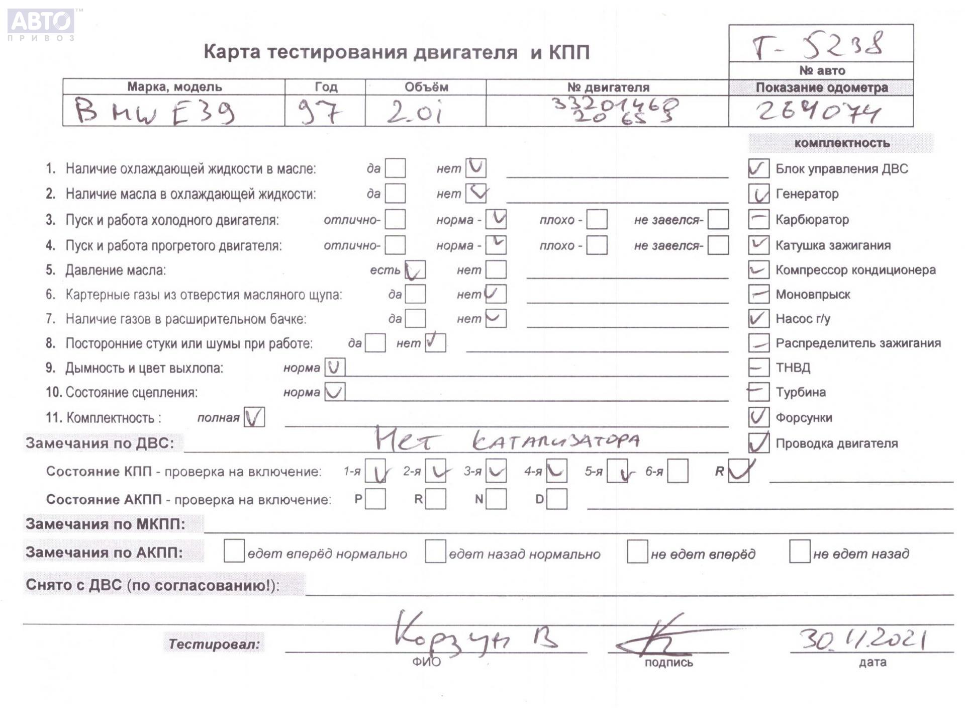 | Марка / Модель / Год: | BMW 5 E39 (1995-2003) 1997 |