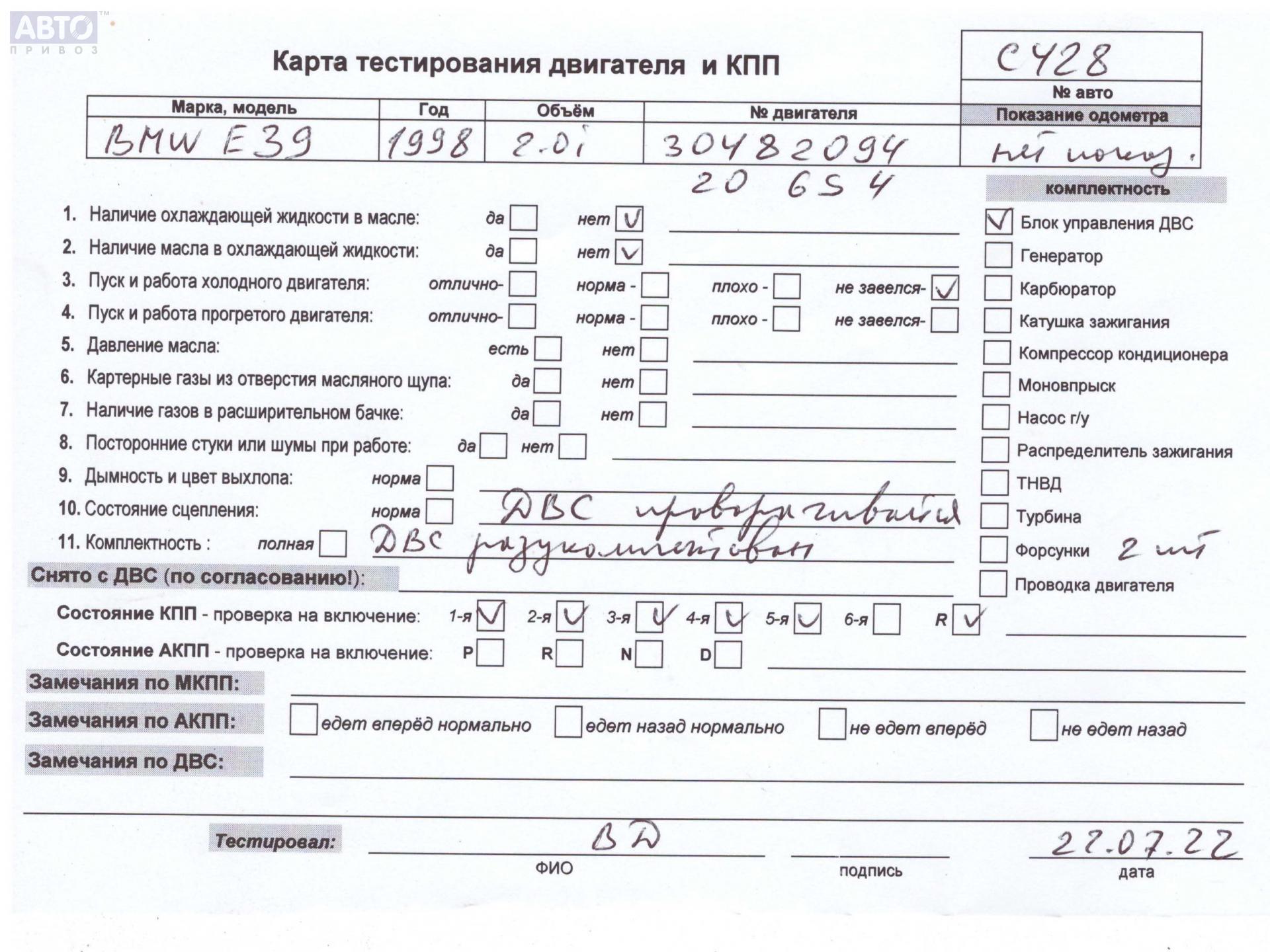 | Автомобиль / VIN: | C0428 WBADR11020GT03698 |