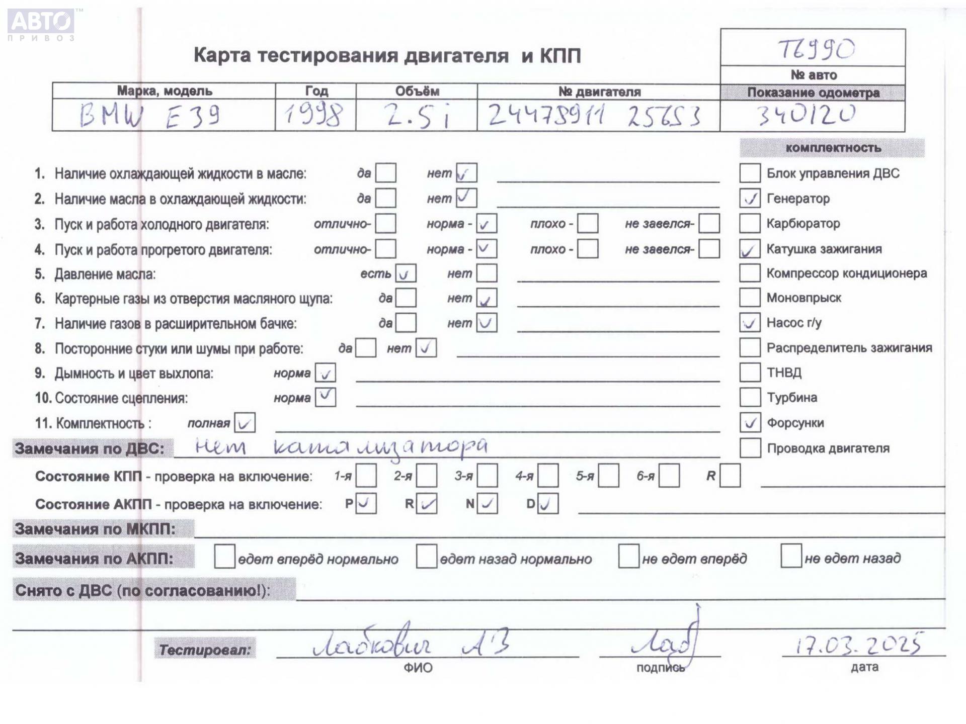 | Марка / Модель / Год: | BMW 5 E39 (1995-2003) 1998 |