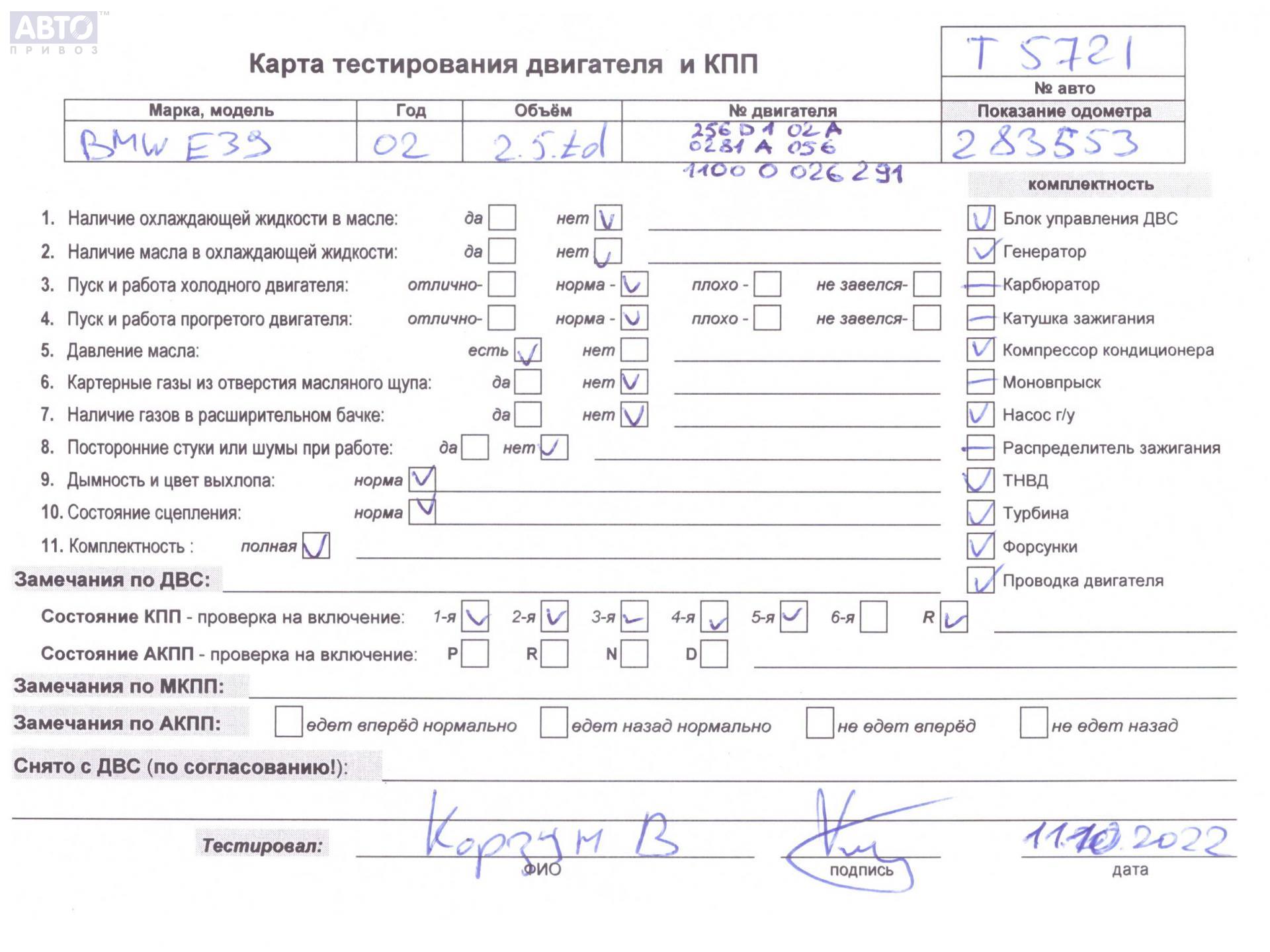 | Марка / Модель / Год: | BMW 5 E39 (1995-2003) 2002 |