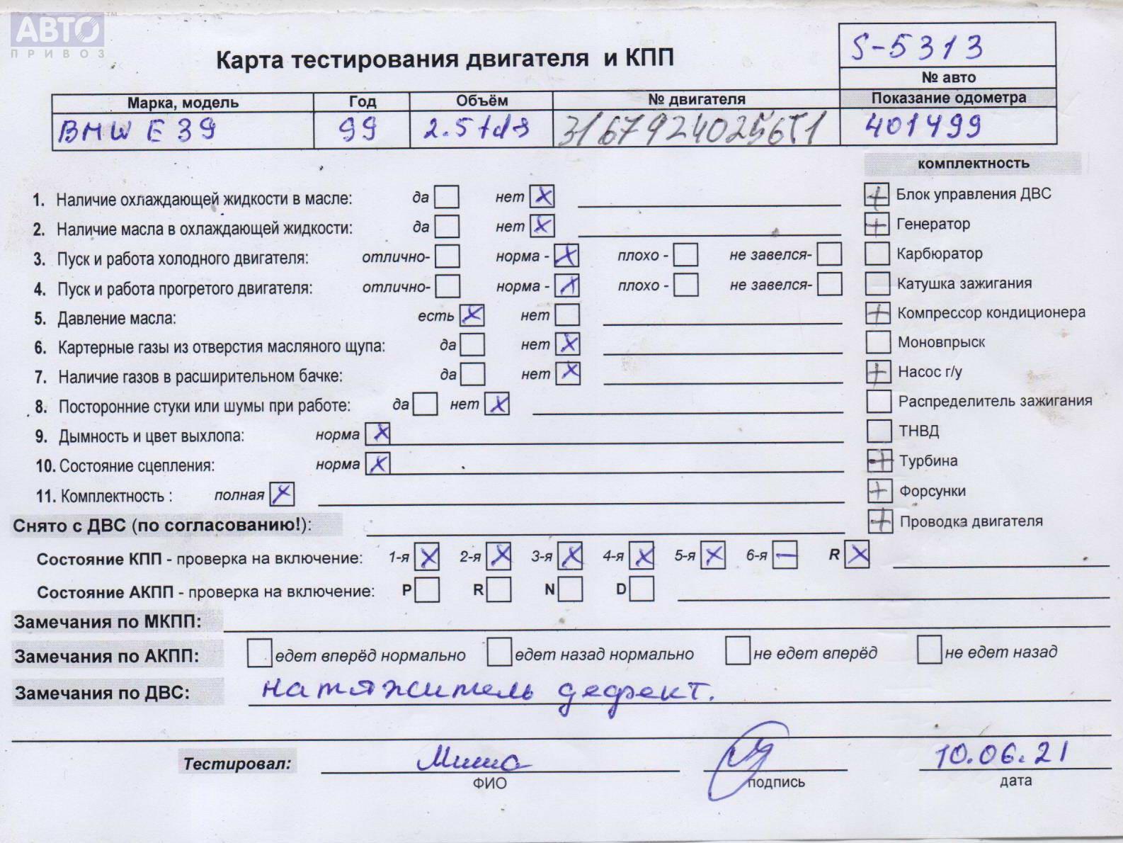 | Марка / Модель / Год: | BMW 5 E39 (1995-2003) 1999 |