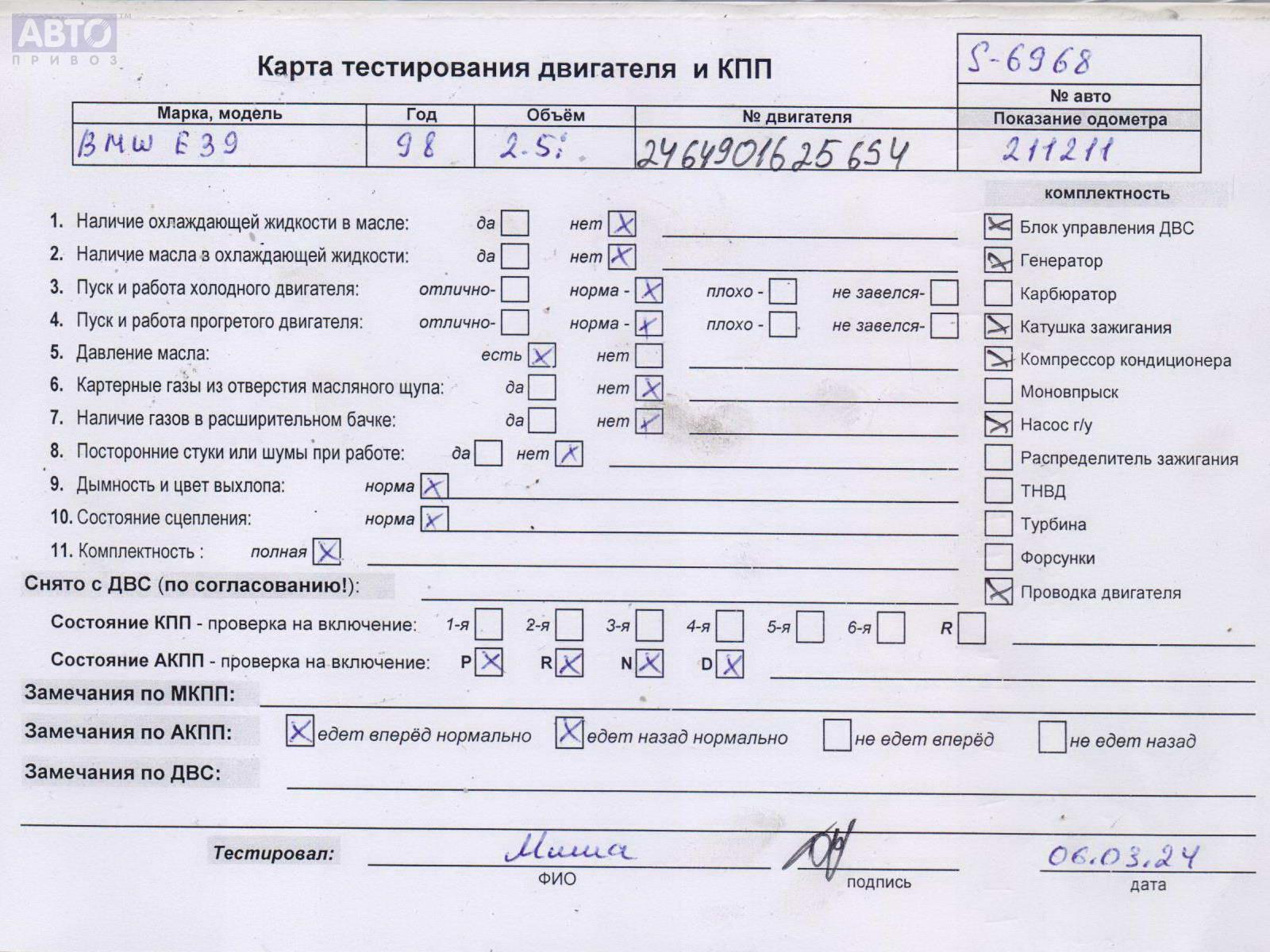 | Автомобиль / VIN: | S6968 WBADR41060GT67342 |