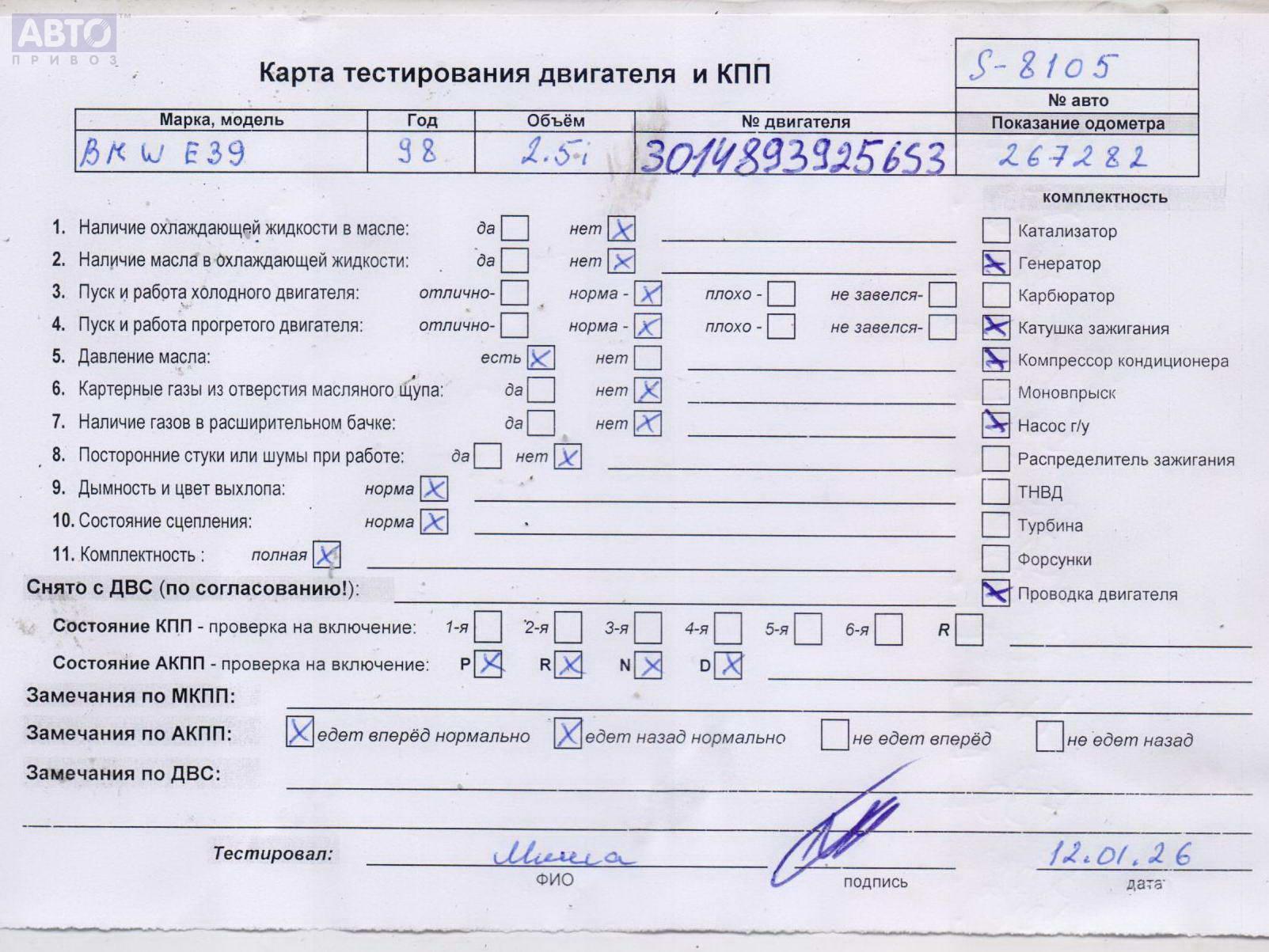 | Марка / Модель / Год: | BMW 5 E39 (1995-2003) 1998 |