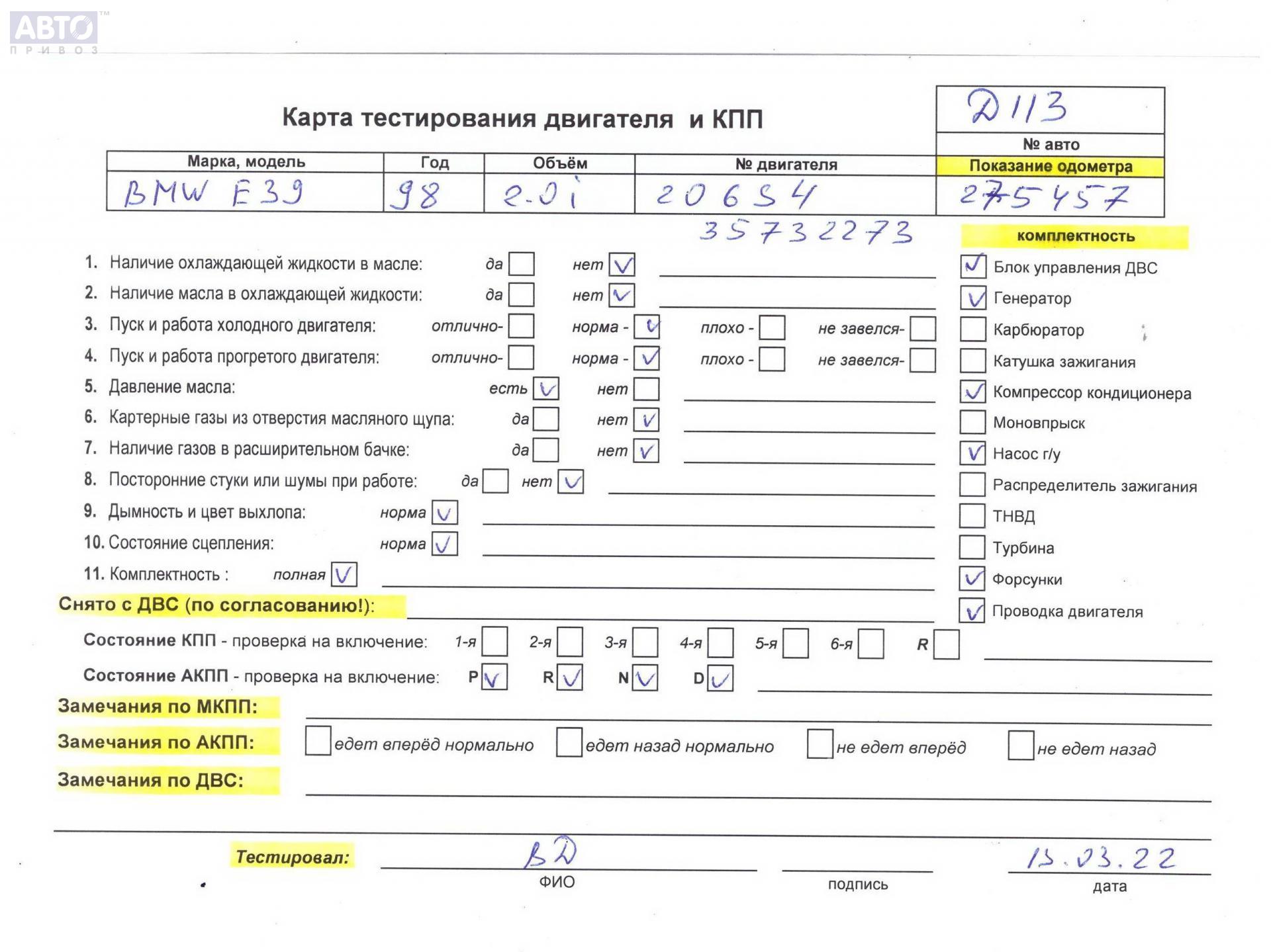 | Марка / Модель / Год: | BMW 5 E39 (1995-2003) 2000 |