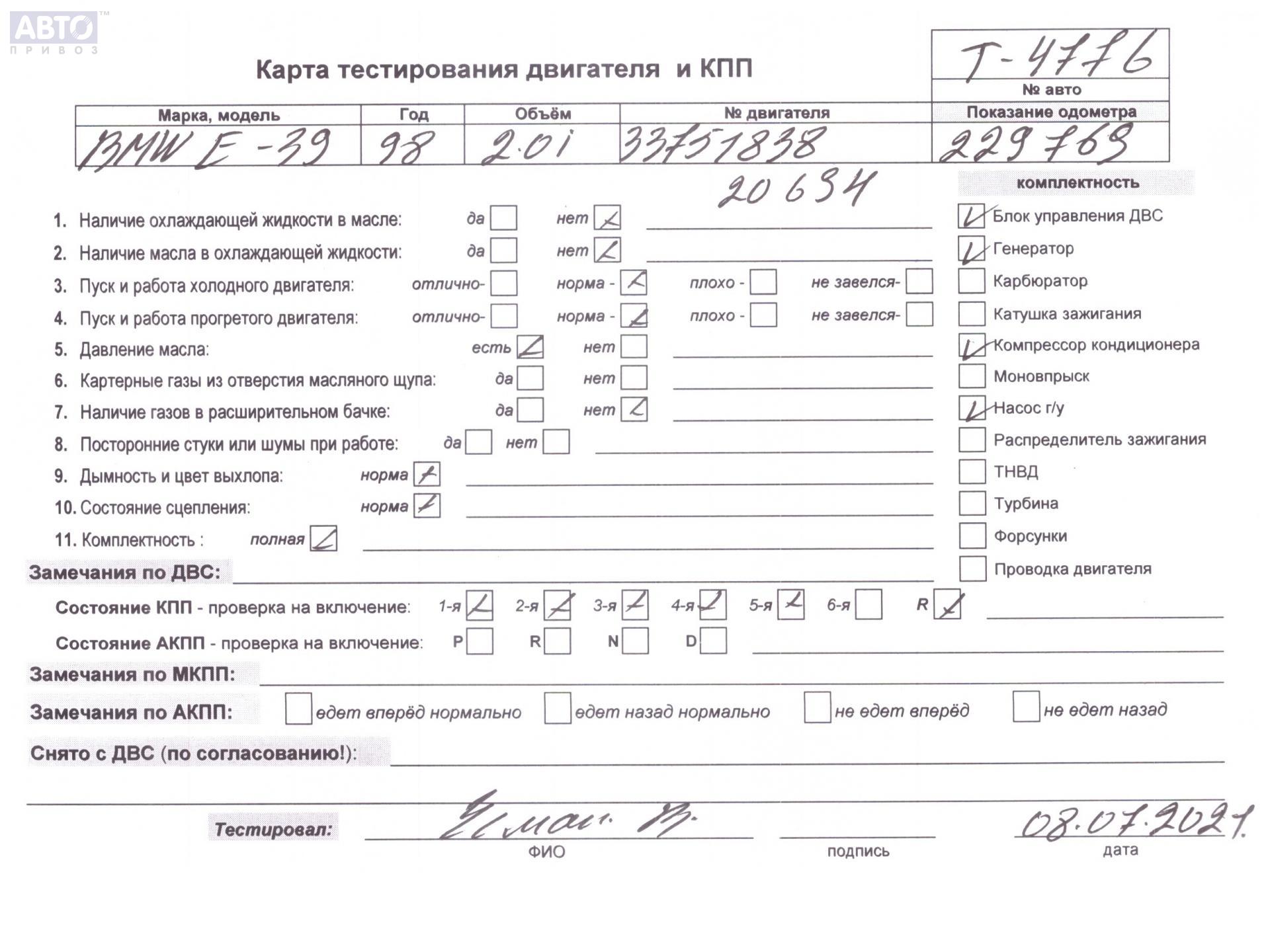 | Марка / Модель / Год: | BMW 5 E39 (1995-2003) 1999 |