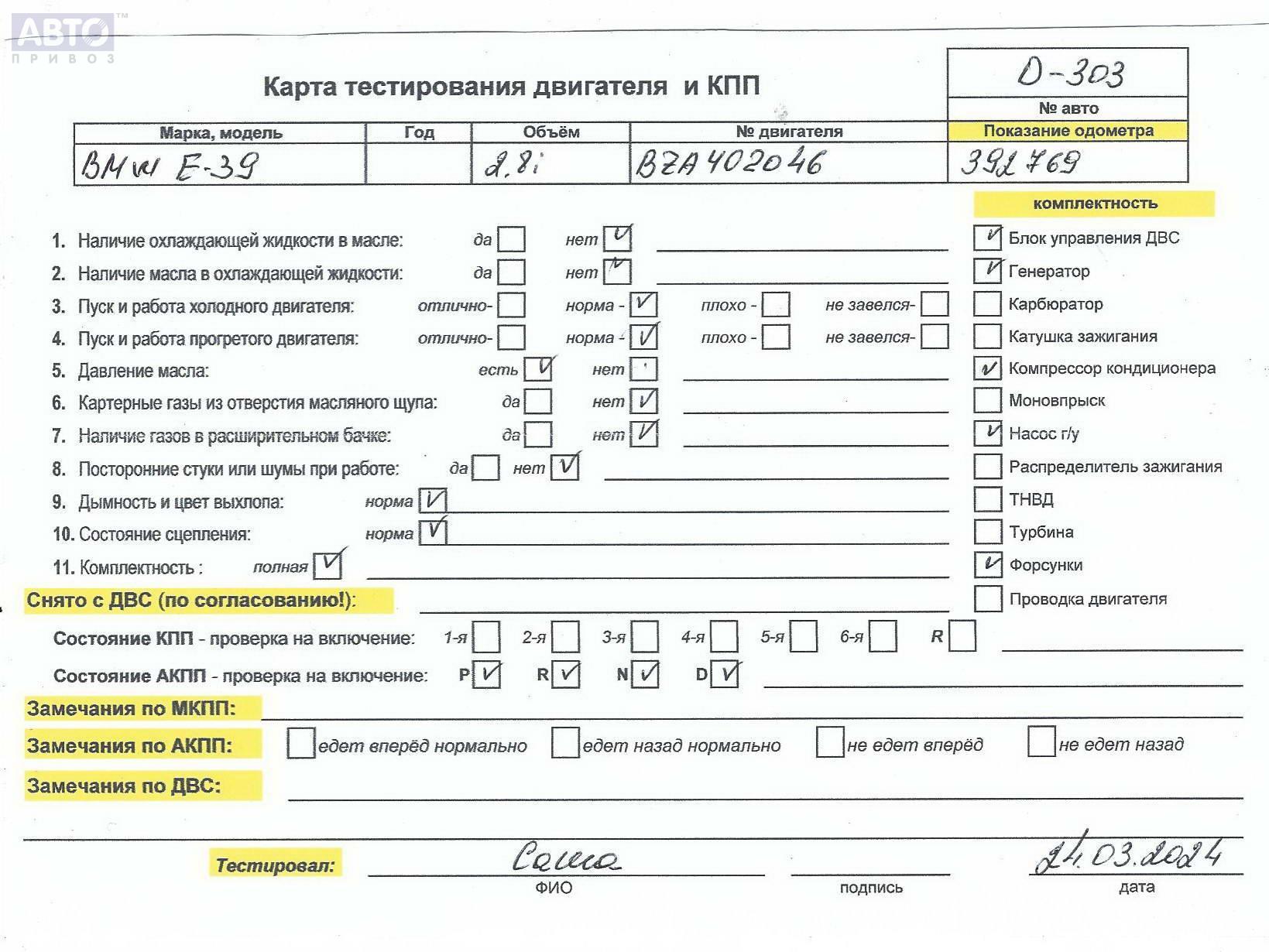 | Автомобиль / VIN: | D0303 WBADH61070BX32753 |