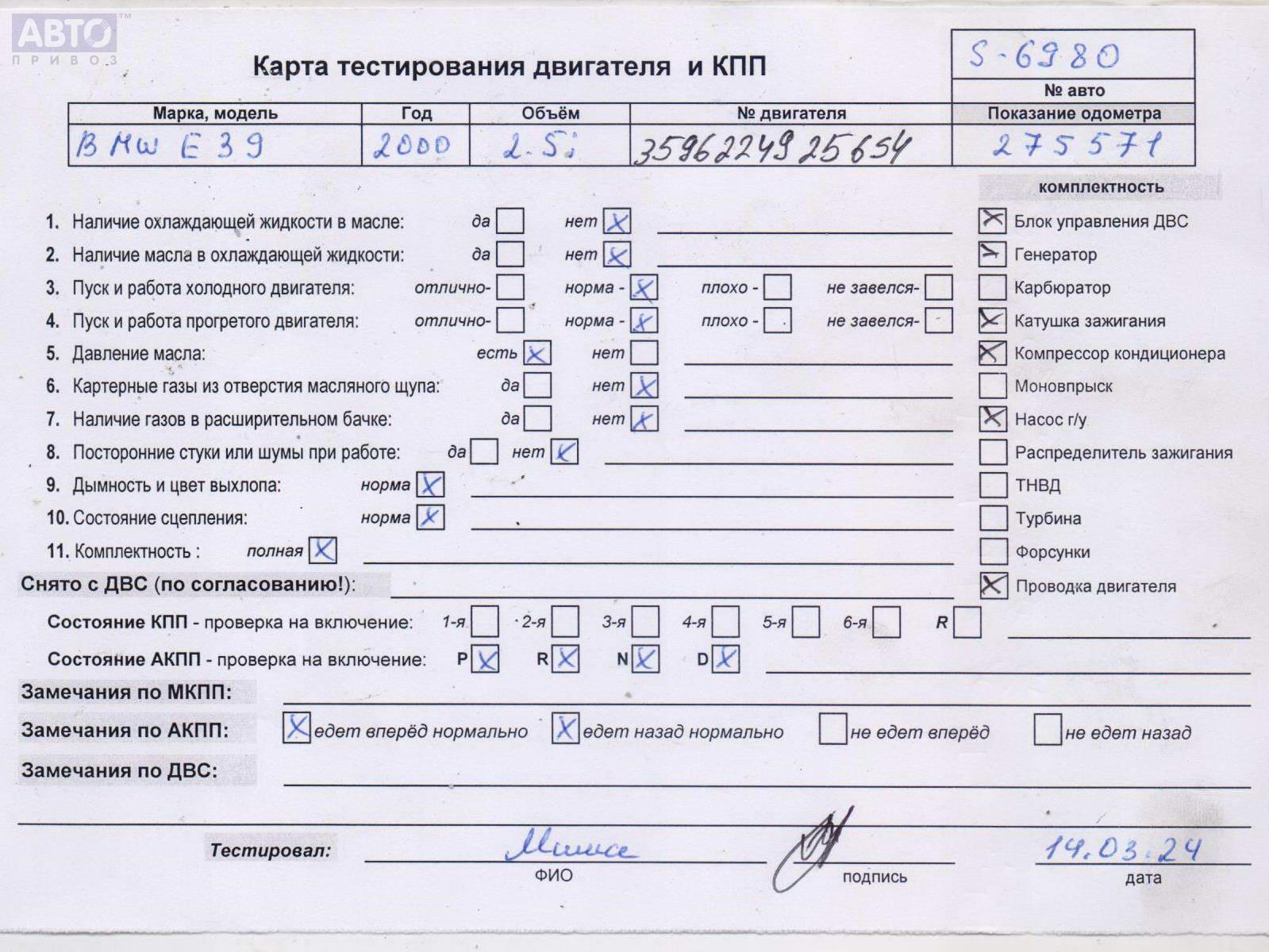 | Марка / Модель / Год: | BMW 5 E39 (1995-2003) 2000 |