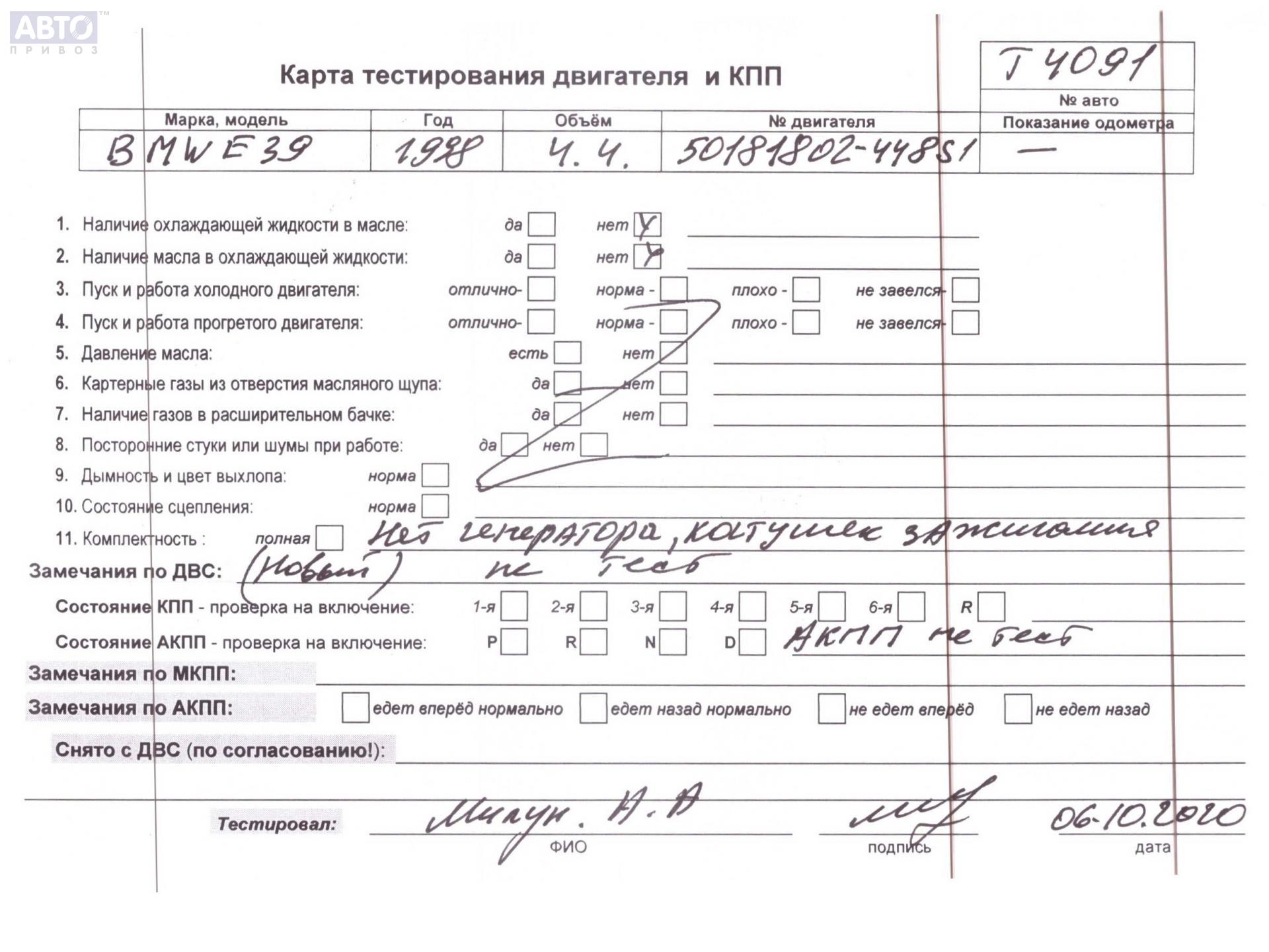 | Автомобиль / VIN: | T4091 WBADJ61020BZ12209 |