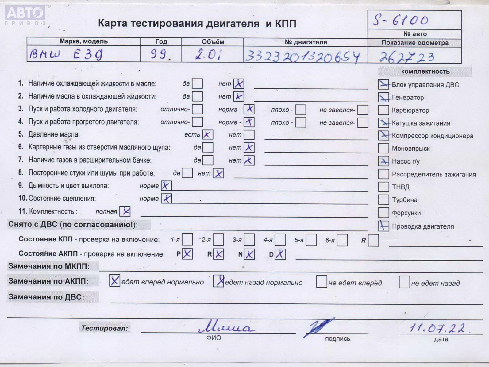 | Марка / Модель / Год: | BMW 5 E39 (1995-2003) 1999 |